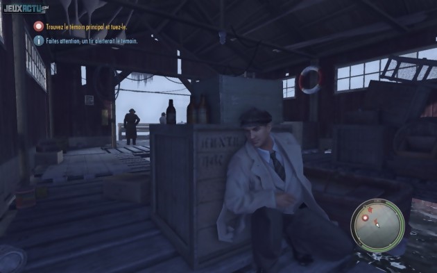 Pourtant, l'examen du jeu commence très positivement. Le scénario prend place au milieu de celui de Mafia II, plus précisément au moment où Vito Scaletta est embarqué par les flics. C'est donc tout naturellement Joe Barbaro que l'on prend en main. La première mission consiste à se renseigner sur les balances qui ont dénoncé Vito. De fil en aiguille, ou plus exactement de tabassage en course-poursuite, on finit par se rendre dans un lieu retiré où un témoin clé est placé sous protection policière. Nous sommes au milieu des années 40, en plein hiver, et il va falloir s'infiltrer discrètement. Les plates-formes de glace du lac partiellement gelé nous offrent un chemin rêvé pour aborder la maison par l'arrière et éliminer discrètement les gardes isolés. Par la suite, le level design nous fournit les moyens d'éviter la plupart des ennemis, même si les plus bourrins d'entre vous pourront toujours choisir de rentrer dans le tas, quitte à donner l'alerte. Mais une fois arrivé à destination, voilà que le témoin parvient à s'enfuir en voiture. S'en suit une course poursuite motorisée assez mémorable, puisque passant par le lac. Dérapages contrôlés pour éviter les trous d'eau, incertitude permanente sur la solidité de la glace, puis retour sur la terre ferme pour appréhender et éliminer l'individu, cette séquence offre son petit lot d'émotions fortes et augure du meilleur pour la suite. Mais voilà, une cinématique tirée par les cheveux plus tard (Joe se retrouve avec un contrat sur la tête juste parce qu'il a mal parlé à Luca Gurino...), le DLC découvre son vrai visage et révèle une structure identique à celle de Jimmy's Vendetta. Car forcé de s'exiler, Joe revient sur Empire Bay cinq ans plus tard et c'est alors une nouvelle façon de jouer qui nous est présentée. C'est à dire : absence de véritable scénario, missions systématiquement chronométrées et invraisemblances tant graphiques que factuelles. En effet, en différents points de la carte figurent des missions à choisir librement et représentées par d'affreuses grosses icônes 3D tournant sur elles-mêmes. Ces sémaphores colorés et irréalistes jurent avec le soin apporté à la reconstitution d'une ville américaine des années 50 et, surtout, ils permettent aux développeurs de fournir un effort minimal en termes de narration.