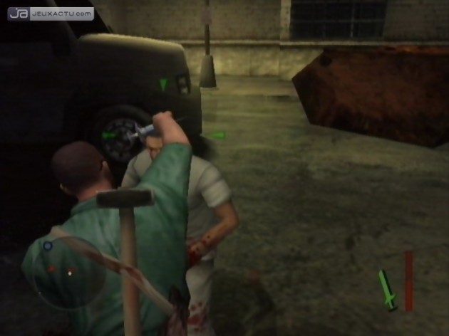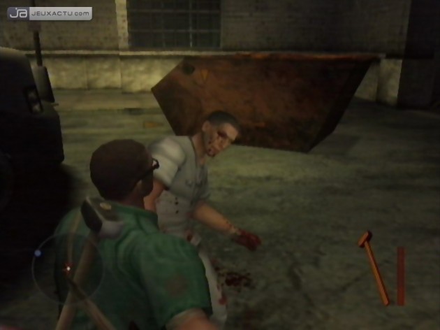 Difficile donc de devoir fournir un effort supplémentaire, couper son souffle pendant quelques secondes et maintenir plus longtemps la touche d’exécution si le résultat à l’écran ne présente plus aucun intérêt. Reste alors la jouissance de mimer les gestes pour ceux qui jouent avec la version Wii, qui offre une interactivité plus intéressante, appuyée en outre par l’impact des coups, les bruitages de chair qui se déchiquètent, d’os qui craquent et autres cris insoutenables. Mais avant de pouvoir jouir d’un tel spectacle, il faut apprendre à évoluer à petits pas de loups, ne pas faire de bruit et se cacher dans la moindre zone d’ombre, afin de surprendre l’ennemi au balayage oculaire restreint. Ces moments où Daniel Lamb reste tapis dans l’ombre, attendant le passage innocent d’un garde rappelle évidemment Splinter Cell, la variété d’actions en moins. Cela dit, à l’instar de Sam Fisher, Lamb est capable de déplacer les cadavres de ses victimes pour les mettre à l’abri des regardes indiscrets. Cela n’est pas valable pour toutes les situations, mais dans les zones peuplées, mieux vaut ne pas laisser de trace derrière soi. Mais soyez rassuré, si un ennemi venait à vous repérer, la partie continue pour se terminer souvent par des combats au corps à corps. La palette d’attaques de Daniel est d’ailleurs assez limitée puisqu’il n’est capable que de balancer quelques pichenettes de-ci de-là. Rien de bien grisant, même si sur Wii, il est demandé de gesticuler la Wiimote et le Nunchuk.