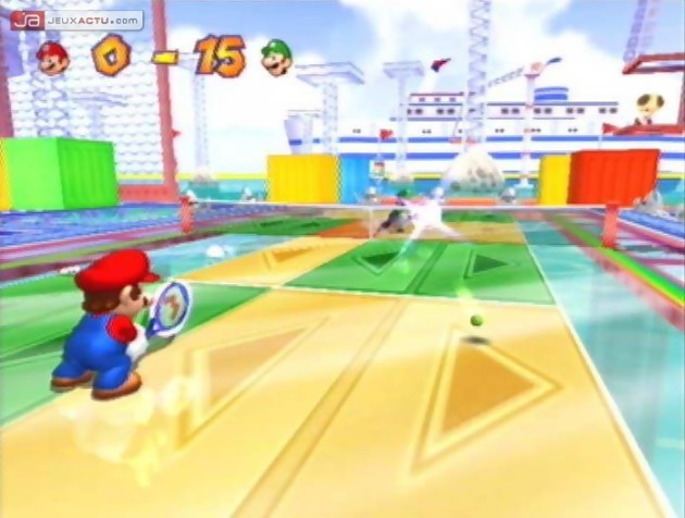 Malgré les lynchages collectifs dont il fait l'objet sur de nombreux sites web, Nintendo ne cède pas sous la pression et continue de nous servir les mêmes plats à l'eau de rose qui font grincer des dents les trentenaires. Tant que les disciples de Shigeru Miyamoto concocteront des titre cubiques aboutis techniquement, il sera difficile pour leurs détracteurs d'argumenter sur un thème autre que celui des "adultes qui achètent une PlayStation 2 ou une Xbox parce que les jeux sont plus matures". Car pour le reste, ils peuvent toujours se gratter les fesses. Pour se la jouer Namco, Capcom ou bien encore Squaresoft - c'est au choix - Nintendo a choisi de nous balancer en pleine tronche une séquence introductive de toute beauté, une fois la mini-galette de Mario Power Tennis insérée et la console allumée. On y voit les personnages du jeu défiler à l'écran, avec une netteté et une propreté incroyables. Le prologue est à l'image du contenu graphique du jeu lorsque l'on tape la balle une fois la manette en main : un character design de daron, une animation inébranlable, des courts colorés et détaillés, des effets d'ombre et de lumière séduisants (jouer sous le coucher de soleil est un vrai régal !), et un humour omniprésent, aussi bien durant les phases de jeu que dans les cut-scenes. Et c'est sans doute dans ce domaine-là que le chérubin de Camelot se démarque de la concurrence. A l'instar de Mario Golf : Toadstool Tour, Mario Power Tennis tente de dédramatiser le sport auquel il rend hommage en mettant en scène des personnages qui amusent la galerie par leurs mimiques sorties tout droit des Looney Tunes, et les animations qui viennent ponctuer leurs Special Shots. Du Kyoto tout craché !