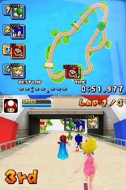 Mario & Sonic aux Jeux Olympiques n'avait pas cassé la barraque sur Wii, et ne la casse toujours pas sur DS, la faute à une réalisation trop fade et un fun moins évident à cerner avec le stylet. Cela dit, le titre s'avère toujours aussi tripant à plusieurs, la possibilité de participer aux circuits du mode solo, et même de créer ses propres tournois étant des prétextes increvables pour lancer des parties jusqu'à quatre joueurs en multi-card. Mario & Sonic aux Jeux Olympiques est aussi compatible avec le single card, mais seul le mode Match Simple est disponible. Toujours pas de jeu en ligne par contre, mais il est possible d'afficher ses propres records sur le réseau via la connexion Wi-Fi Nintendo. Bref, un Mario & Sonic aux Jeux Olympiques sur DS un tantinet décevant par rapport à ce que l'on a connu sur Wii, mais qui remplit son objectif premier, celui de proposer un mode multi complet et attrayant. L’essentiel.