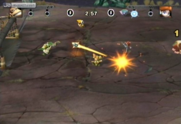 Pour conserver un côté fun, on retrouve les attaques spéciales, découpées en deux parties : les super-strikes et les méga-strikes. Pour parvenir à les déclencher, il va falloir jouer avec la jauge qui apparaît à l’écran après avoir suffisamment maintenu le bouton enfoncé. Pas facile à faire quand on sait que les adversaires ne laissent que peu de temps mort pour déclencher une grosse frappe. En cas de réussite, il est possible de marquer jusqu’à 6 buts en une seule frappe. C’est la grande particularité du méga-strike, bien utile pour creuser l’écart ou à l’inverse de remonter son score. Pas de panique pour celui qui subit l’attaque, un mini-jeu lui permet de contrer chaque balle à l’aide du pointeur de la Wiimote. Pas de grands changements dans les lignes donc pour se Mario Strikers Charged Football qui se contente d’appliquer une recette gagnante en y ajoutant quelques subtilités néanmoins indispensables. Mais l’atout majeur de cette suite sur Wii est bien évidemment son mode multijoueur, jouable en ligne. A l’instar des jeux tels que Mario Kart DS, la connexion se fait avec une aisance enfantine et les parties moroses en solo deviennent subitement palpitantes. Un avantage indéniable.