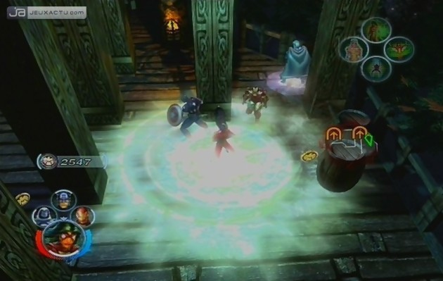 Cette facilité de progression est peut-être un peu trop présente même pendant les combats. Pas besoin d’utiliser de fioles magiques ou de breuvages médicaux, les orbes rouges que vous récupèrerez en tuant vos ennemis rempliront aisément votre jauge de vie. Parfois même certains personnages comme Doctor Strange se régénèreront au contact des vilains. Il est donc rare de mourir, mais pas impossible. Si votre avatar s’écroule au sol, il vous reste trois autres collègues à utiliser car vous pouvez les choisir quand vous voulez et comme vous voulez via la croix multidirectionnelle. Mais en règle générale, ce sont les personnages dirigés par l’intelligence artificielle qui meurent les premiers tout simplement parce qu’ils ne sont pas très fût-fûtes lorsque vous vous approchez des ravins ou d’une rivière de lave. Malgré le bouton RT qui permet de leur donner des ordres dont celui de vous suivre, d’attaquer ou de défendre, ils n’hésitent pas à poursuivre un adversaire même lorsqu’il périt dans les flammes. Autant dire que pour palier à ce problème, le mode "Coopération" vous tend les bras. Jouables jusqu’à quatre sur une seule console ou sur Xbox Live malgré quelques problèmes de lag, ce mode double considérablement la durée de vie du jeu. Comptez une dizaine d’heures de jeu en solo sans vous occuper des nombreuses missions annexes caractérisées par des disques de simulation d’entraînement pour terminer Marvel Ultimate Alliance.