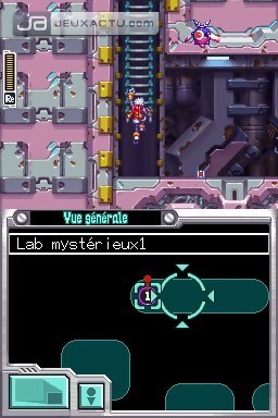 Rien de bien nouveau à première vue donc, la formule a suffisamment été éprouvée et approuvée par les joueurs pour se permettre de la bouleverser. Mais vous vous doutez bien que Capcom n’a pu rester les bras croisés et a du trouver une véritable nouveauté à intégrer afin de conférer un minimum de légitimité à ce Mega Man ZX Advent. Ce qui est chose faite avec l’apparition du système A-Trans de votre Biométal de modèle A, que vous trouverez – comme toujours – fortuitement en début de partie. En plus de la collecte des différents modèles de Mega Man, le jeu permettra à l’armure de notre héros d’absorber l’ADN des différents boss vaincus pour pouvoir ensuite permettre à notre avatar de revêtir leur apparence et ainsi profiter de leurs spécificités. Hormis les capacités offensives octroyées (qui permettent de venir plus facilement à bout des différents ennemis rencontrés par la suite), ce nouveau type de personnage apporte une dimension nouvelle au déroulement de l’aventure, et offre une variété bien différente aux simples blocs de glace à faire fondre pour libérer sa route. A titre d’exemple, se transformer en Chronoforce permet de se déplacer librement une fois immergé sous l’eau, ce qui vous ouvrira évidemment de nouveaux chemins à explorer, ou vous permettra d’accéder à des mécanismes bien protégés auparavant. Les possibilités sont bien plus nombreuses, vous vous en doutez, mais découvrir les pouvoirs et les capacités de chacun des boss fait partie des petits plaisirs du jeu que l’on vous ne volera pas. D’ailleurs, à l’instar du premier opus, ceux-ci se veulent plus long qu’à l’accoutumée, grâce notamment à la progression de type Metroid qui autorise une pléiade de sous-quêtes bien généreuse en items utiles. Les va-et-vient pour les finir en totalité seront donc nombreux, même si les Points de Sauvegarde permettent de rejoindre par simple téléportation les Points de Distorsion préalablement activés.