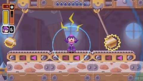 A vrai dire, le problème n’est pas l’ordre dans lequel ces deux jeux sont apparus, mais il faut bien avouer que nous nous sommes laissés un peu abuser par le parfum de nostalgie qui émanait d’une refonte du Megaman original. Triste constat en réalité, puisque contre toutes nos attentes, non seulement le remake en question ne propose rien de fantastique, excepté une refonte esthétique audacieuse, mais surtout ce pèlerinage original ne nous a pas transporté autant que nous le souhaitions. La nostalgie est une sacrée traîtresse qui falsifie les sentiments, et elle a frappé dur ce coup-ci. Finalement, le second opus de la série, considéré majoritairement comme le meilleur disponible sur NES, n’aurait-il pas laissé un impact plus positif ? Quoi qu’il en soit, Megaman Powered Up se veut accessible au plus grand nombre grâce à l’apparition d’une difficulté paramétrable. Le mode facile est ainsi une véritable ballade de santé, aidé que l’on est par des modifications profondes de l’architecture qui nous évite de tomber trop facilement dans un gouffre par exemple. Dans ce mode, Megaman ramène ses frères robots à la raison et à la maison, ce qui nous permettra d’incarner Fireman, Iceman, Cutman et consorts. Reste que le game design du jeu n’est pas spécialement étudié pour exploiter les facultés des autres robots que le polyvalent justicier bleuté. A noter l’apparition de deux nouveaux stages, et donc de deux nouveaux robots, puisque Oilman et Timeman font leur entrée. A l’opposé, le jeu est également disponible dans un mode qui conserve sa sévérité initiale, mais sans se soustraire pour autant à ce design SD (super deformed) complètement kawai. Et là, pas de coussinets. Les chutes font mal, les boss tapent fort, les pièges sont affûtés et les vies sont… au nombre de deux. Les amoureux de challenge en tout genres, qui auront par ailleurs torché l’aventure en très peu de temps, pourront continuer à aiguiser leurs nerfs et leurs réflexes autour des dizaines d’épreuves amoureusement étudiées par Capcom. Des séquences d’adresses bien balèzes pour les amoureux de plates-formes. Et après ? Bonne question. Loin d’être un soft digne de figurer parmi les meilleurs classiques de la ludothèque PSP, Powered Up reste finalement un UMD bien léger, dont l’intérêt rivalise mal avec Maverick Hunter X. Contrairement à ce que la conclusion du test de ce dernier laissait penser, c’est finalement Powered Up qui devient notre second choix. La modernité du premier l’emportant sur la réputation du second. Et si l’on oublie pas de signaler la présence d’un très complet mode de création de stages, on retiendra surtout qu’il ne captivera pas grand monde, en dehors de quelques game designers en devenir.