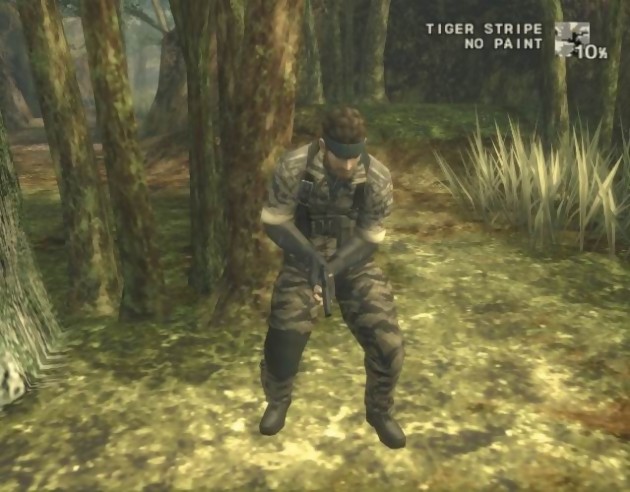 D’entrée de jeu, l’impact graphique est saisissant. Luxuriante, chaude et vivante, la jungle, votre nouveau terrain de jeu, impose instantanément sa classe ! Voir durant la nuit l’ombre des feuilles se découper avec précision sur les épaules de Snake, admirer la gestion des particules (éclats de bois lors des séquences de shoot, gerbes d’eau des cascades…), calme instantanément ! La PlayStation 2 est éreintée, clairement poussée dans ses derniers retranchements. Mais le fait que quelques ralentissements s’invitent parfois à ce festin ludique ne gâchera pas la fête tant l’univers de Metal Gear Solid 3 impressionne par sa variété, son souci du détail, la vie qui anime la faune et la flore des lieux. Hautes fougères d’où jaillissent des oiseaux à votre approche, serpents rampants au sol, grondements des cascades, douce lumière du couché de soleil filtrée par les arbres centenaires… Comme nous l’explique Hideo Kojima : "Notre priorité fut de concevoir une jungle qui ressemble réellement à une jungle. C’est un exercice assez complexe car la densité des lieux devient essentielle à sa crédibilité. Le joueur pourra se déplacer librement, il n’y a pas de chemin unique, plutôt un réseau de passages tous interconnectés qui offrent une grande liberté de déplacements. Pour y parvenir nous avons dû abandonner le moteur graphique de Metal Gear Solid 2 trop spécialisé sur des environnements en intérieur. Il nous fallait être capable d’afficher de grandes étendues." Vous traverserez ainsi une montagne, des cavernes, des bases russes, des marécages…  Rarement Metal Gear n’avait proposé autant de variété de lieux et de situations. Une ampleur admirablement mise en lumière lors de certains affrontements instantanément cultes ! En effet comment ne pas crier au génie lors de la séquence de snipe opposant Snake à The End. Près d’une heure de duel intense, tapis dans la forêt. Tout simplement unique, sans parler de la rencontre onirique avec The Sorrow ou encore le duel aussi épique, qu’esthétique contre The Boss, le tout souligné par la bande son poignante composée par le tandem Harry Gregson-Williams et Norihiko Hibino. Les boss ont beau être, pour la plupart, sérieusement excentriques, leur classe et l’intelligence des combats qu’ils offrent risquent bien de marquer l’histoire du jeu vidéo. Et oui, en toute simplicidad
