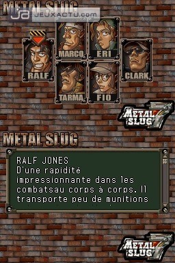 On a beau lui trouver toutes les qualités du monde, il faut bien admettre que la saga Metal Slug n’a finalement que très peu évolué. Moteur graphique identique depuis sa création, bestiaire à peine renouvelé, quelques armes vraiment nouvelles, il n’y a guère que le gameplay qui a gagné en intérêt, surtout depuis Metal Slug 6 et l’arrivée de Ralph et de Clark dans le casting. Car pour ceux qui ont raté le coche, sachez que depuis cet opus, les protagonistes ne se contentent plus de tirer à tout bout de champ sans la moindre réflexion. Désormais, chacun des soldats jouables disposent de capacités propres, qu’on distingue soit par une efficacité plus accrue des armes à feu (Marco), soit en transportant deux fois plus de grenades que les autres (Eri), soit par une augmentation de la puissance de feu (Tarma), soit en ayant d’emblée une arme lourde (Fio), soit en rendant l’âme après avoir reçu deux tirs (Ralph) ou soit en ayant la possibilité de projeter les ennemis au loin (Clark). Bref, autant de spécificités qui obligent un tant soit peu le joueur à porter son choix en fonction de ces compétences et ses préférences. Parmi les nouveautés reprises de Metal Slug 6 et qui semblent désormais faire partie intégrante de la nouvelle approche du label, il est toujours possible de stocker deux armes et de les permuter en appuyant sur la touche de tranche R. De même, une petite jauge, située en bas à gauche de l’écran, permet de multiplier ses points, jusqu’à 16 fois la mise principale. Pour ce faire, il faut continuellement attaquer l’ennemi en un temps limité pour que la jauge atteigne son paroxysme, à savoir le stade Max.