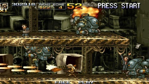 Une compilation réunissant l'ensemble des épisodes en 2D de la série Metal Slug ? Il y a quelques années encore, seule une poignée de joueurs utopistes pouvaient rêver à pareille résultat. C'est désormais chose faite grâce à la nouvelle politique de SNK Playmore qui a depuis quelques années la ferme attention de faire connaître ses vieux hits au grand public. Certes, les puristes de l'Arcade et de la Neo Geo auront toujours quelque chose à redire quant aux adaptations consoles de la saga mais le niveau rapport qualité / prix étant tout simplement intéressant, il serait franchement dommage de passer à côté, surtout sur PSP où le concept s'adapte avec brio au jeu nomade. Le seul point noir qui vient ternir le tableau est l'absence d'un véritable affichage en 16/9, l'image étant écrasée au format widescreen. Dommage.