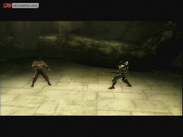 Et dans Mortal Kombat : Shaolin Monks, cela devient un jeu d’enfant que d’enchaîner les bourre-pifs à tire-larigot. Le gameplay a été spécialement conçu pour éviter de tomber dans une mélasse incompréhensible de coups de poings et de pieds enchaînés comme on peut souvent le voir dans certains jeux d’action comme Rise to Honour ou Death By Degrees, la faute à un stick analogique droit affublé de combinaisons offensives. C’est pourquoi les développeurs américains de Paradox Entertainment ont privilégié un gameplay plus simpliste et concentré sur l’utilisation des boutons. Avant de marteler comme un forcené les touches de la manette, il faut bien assimiler les différents coups proposés par les deux protagonistes. Grosso modo, il existe trois types de frappes plus ou moins puissantes qui pourront, à l’occasion, faire valdinguer les corps de vos ennemis à droite et à gauche, ainsi qu’un bouton associé aux projections. Jusque-là, tout est normal voire peu trop peut-être. Mais là où MK : Shaolin Monks tire son épingle du jeu, c’est par le grand nombre d’enchaînements réalisables et la fluidité avec laquelle on réalise les combos. Que vous affrontiez un adversaire en duel ou que vous soyez submergé par une horde de soldats, c’est avec une maîtrise quasi-parfaite que l’on se sort des situations même les plus dangereuses.