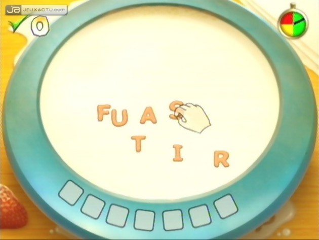 Au fur et à mesure qu'on avance, on débloque de nouvelles épreuves, mais hélas leur nombre est assez limité, puisqu'on en compte seulement sept. On aurait aimé plus de variantes, plus de règles, il y avait sans doute matière à aller plus loin. Tenez, pourquoi pas des mots croisés ? Certains sont jouables à plusieurs, jusqu'à deux ou quatre. Sympathique, mais pas de quoi non plus occuper ses longues soirées d'hiver entre potes. Mais pour sa défense, rappelons que Mon Coach Personnel : J'enrichis Mon Vocabulaire est un casual game, plutôt destiné à être pratiqué régulièrement par petites sessions ; on peut donc difficilement lui reprocher de ne pas nous tenir en haleine des heures durant. En revanche, on peut s'attrister que certains exercices n’exploitent pas mieux les fonctionnalités de la Wiimote : il faut parfois faire défiler des lettres pour choisir la bonne, alors qu'il aurait été tellement plus simple d'afficher un clavier virtuel à l'écran ! A vouloir rendre la chose un peu plus ludique qu'elle ne l'est vraiment, les développeurs ont compliqué la tâche inutilement. Heureusement, un exercice - la lettre manquante - est également jouable à partir de sa DS. Il suffit de lancer le téléchargement à partir de la console pour pouvoir utiliser son stylet et son écran tactile, afin de dessiner les lettres. C'est déjà plus sympa que la télécommande, mais ça confirme une impression qui saute aux yeux : le jeu semble avant tout conçu pour la DS, et pas pour une console de salon ! On ne saurait donc trop vous conseiller d'opter pour la version portable si vous avez la machine, car vous y gagnerez en ergonomie. Et surtout, vous pourrez faire vos exercices plus facilement qu'en vous installant devant la télé familiale. Bon, maintenant, perso moi ce que j'attends, c'est Mon Coach Personnel : perdez vos kilos en trop ! Ah mais zut, c'est déjà prévu et ça s'appelle Wii Fit.