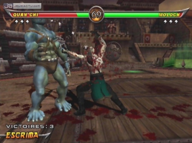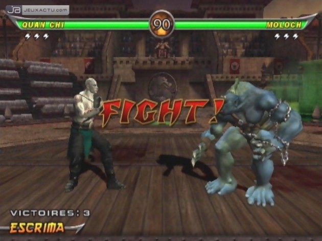 Les amateurs de casse-briques et de prises de tête peuvent pleurer les modes "Puzzle" et "Echecs", aujourd’hui disparus de ce nouvel épisode. Particulièrement décalés, ces deux modes apportaient une vraie valeur ajoutée au titre et c’est d’autant plus dommage qu’ils ont été remplacé par le Moteur Kombat, qui n'apporte franchement rien de bien intéressant. Clone de Mario Kart, ce mode un peu hors-sujet réunit une dizaine de protagonistes autour d'un jeu de courses. Pas de sensations de vitesse, un manque cruel de fun, peu de circuits, pas de championnat, deux items, autant dire que l’intérêt est des plus limités. Concernant le fameux Mortal Kombat, Midway a tenu a mettre les petits plats dans les grands, comprendre par là faire dans le démesuré. En témoigne le nombre de personnages impressionnant disponible dès le départ. En effet, on peut donc faire son choix parmi 58 combattants pour ensuite se lancer dans les arènes du tournoi et 4 autres personnages supplémentaires restent à débloquer. On peut même créer son propre Kombattant de la tête au pied, choisir ses tenues vestimentaires pour ensuite lui attribuer un style de combat bien particulier. Il s’agit là d’une option que l’on ne reniera pas car cette abondance de personnages n’a pu se faire sans sacrifice. En effet, on peut reprocher que les Kombattants n’ont pas une véritable identité propre car beaucoup ont des panels de mouvements extrêmement proches. De plus, là où ils pouvaient switcher entre 3 styles de combat différents (dont deux à mains nues et une avec une arme) dans les précédents opus, ils n’en possèdent plus que deux maintenant. Les combos meurtriers ont quasiment disparu ou se sont considérablement réduits. Dommage.