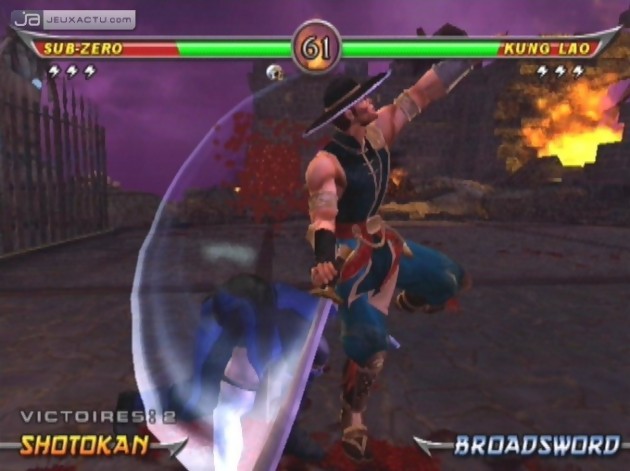 Désormais bien connu des amateurs, le mode "Konquest" reprend donc cette trame scénaristique de base. Pour la peine, on incarne un nouveau personnage nommé Taven, demi-dieu de son état, en compétition avec son frère dans cette quête pour la succession de leur père. En stase dans un autre monde durant des années sans en connaître la raison, ils sont à peine réveillés qu’on les charge de ce lourd fardeau. Mais rien ne se passe comme l’avait prévu la prophétie et les événements dégénèrent. En premier lieu, Taven doit d’abord reprendre ses esprits et l’on débloque au fur et à mesure de ses pérégrinations de nouveaux coups spéciaux dévastateurs. Plus complet qu’auparavant, le mode "Konquest" se déroule toujours dans un environnement en trois dimensions. Mais depuis, Shaolin Monks est passé par là et les développeurs en ont profité pour doter Taven de nouveaux mouvements. Le jeu se transformé en beat’them all pour l’occasion et ce sont des hordes d’ennemis en tous genres qui se dresseront sur notre chemin. Le principe reste le même, il s’agit de se rendre d’un point à un autre pour engager le combat avec un Kombattant mais les environnements ont été fortement restreints. Encore plus linéaire que cela l’était déjà, chaque objectif est symbolisé par un halo vert, des fois qu’on se perde dans un couloir fermé. On ne va pas s’en plaindre toutefois, il s’agit avant tout d’un jeu de combat et ce mode reste très intéressant. Il devient même un passage indispensable si l’on souhaite débloquer la majorité des bonus, aussi bien en fouillant directement dans des coffres, en les monnayant à la Krypte contre les pièces d’or collectés ou en ramassant les 60 artefacts disséminés un peu partout.