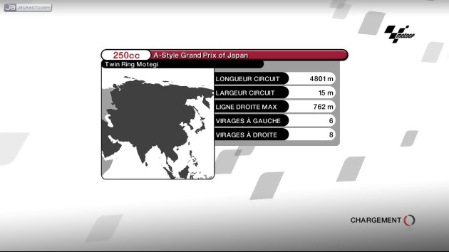 Le contenu de MotoGP 08 assure l'essentiel, à savoir la présence de toutes les écuries officielles des catégories 125cc, 250cc et MotoGP - Yamaha Tech 3, Ducati, Suzuki, Kawasaki par exemple -, des pilotes naturellement - Valentino Rossi, Casey Stoner, Dani Pedrosa, Marco Melandri, Loris Capirossi, Nicky Hayden pour les plus connus -, et des circuits répartis aux quatre coins de la planète. Pas de surprise donc, si ce n'est la possibilité de jeter un coup d'oeil aux classes inférieures nettement moins médiatisées, sauf lorsqu'un pilote français parvient à réaliser un miracle. Plus sérieusement, il est possible de mener sa propre carrière qui s'étale sur plusieurs saisons. Pour espérer goûter à la catégorie suprême, le newbie devra d'abord se faire les dents en 125 et en 250cc. Bien vu. Bien vu également les Points d'Evolution que l'on récolte à la fin de chaque course - à condition d'être bien placé au classement -, et qui permettent d'améliorer le rendement de sa bécane sur quatre points précis : vitesse max, freinage, accélération, direction. Hormis le mode Carrière, on peut aussi se lancer dans un Championnat on ne peut plus classique, ou bien tenter sa chance dans un Contre-La-Montre pour claquer quelques records. Sinon, les Défis sont là pour tenter de varier les plaisirs : il s'agira alors d'accomplir un certain nombre de tâches dans des conditions de course définies. Enfin, on ajoutera quelques syllabes sur l'ambiance sonore de MotoGP 08 qui est de bonne facture, surtout concernant le rugissement des moteurs qui change d'une catégorie à une autre. Ce qui permet de masquer les thèmes musicaux un brin répétitives.