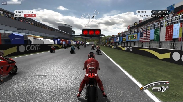Le contenu de MotoGP 08 assure l'essentiel, à savoir la présence de toutes les écuries officielles des catégories 125cc, 250cc et MotoGP - Yamaha Tech 3, Ducati, Suzuki, Kawasaki par exemple -, des pilotes naturellement - Valentino Rossi, Casey Stoner, Dani Pedrosa, Marco Melandri, Loris Capirossi, Nicky Hayden pour les plus connus -, et des circuits répartis aux quatre coins de la planète. Pas de surprise donc, si ce n'est la possibilité de jeter un coup d'oeil aux classes inférieures nettement moins médiatisées, sauf lorsqu'un pilote français parvient à réaliser un miracle. Plus sérieusement, il est possible de mener sa propre carrière qui s'étale sur plusieurs saisons. Pour espérer goûter à la catégorie suprême, le newbie devra d'abord se faire les dents en 125 et en 250cc. Bien vu. Bien vu également les Points d'Evolution que l'on récolte à la fin de chaque course - à condition d'être bien placé au classement -, et qui permettent d'améliorer le rendement de sa bécane sur quatre points précis : vitesse max, freinage, accélération, direction. Hormis le mode Carrière, on peut aussi se lancer dans un Championnat on ne peut plus classique, ou bien tenter sa chance dans un Contre-La-Montre pour claquer quelques records. Sinon, les Défis sont là pour tenter de varier les plaisirs : il s'agira alors d'accomplir un certain nombre de tâches dans des conditions de course définies. Enfin, on ajoutera quelques syllabes sur l'ambiance sonore de MotoGP 08 qui est de bonne facture, surtout concernant le rugissement des moteurs qui change d'une catégorie à une autre. Ce qui permet de masquer les thèmes musicaux un brin répétitives.