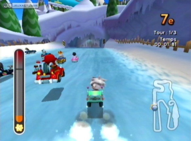 Le constat peut sembler rude, mais MySims Racing n'offre aucune marge de progression. La prise en main est immédiate, ce qui est plutôt une bonne chose, mais la conduite ne propose aucune subtilité qui permettrait de faire la différence avec les adversaires. Et ce ne sont pas les drifts qui mettront les nerfs au supplice, ni même le Boost-o-Mètre sur lequel on fondait pourtant quelques espoirs. Quatre configurations sont disponibles pour se saisir du volant, mais les solutions les plus viables demeurent la manette classique et le pad GameCube. Le duo Wiimote/Nunchuk se révèle trop aléatoire pour exécuter des manoeuvres de façon précise, tandis que le Wii Wheel n'offre toujours pas un confort de jeu convaincant pour les puristes. En termes de réalisation, MySims Racing ne rend pas vraiment service à la Wii avec des graphismes qui flirtent avec le low cost. C'est simple, les environnements sont pauvres, la modélisation des véhicules bancale et les couleurs fades. Point. Finalement, c'est dans la customisation des montures que MySims Racing parvient à redonner le sourire, à condition de répondre au moindre désir des habitants de Speedville, une sorte de hub dans lequel on doit se balader en mode Histoire. Chaque défi remporté permet d'accéder aux ébauches des pièces qui améliorent sensiblement les performances du véhicule. Pour pouvoir fabriquer lesdites pièces, il faudra également disposer de suffisamment d'essence, ces petits cristaux que l'on peut dénicher ici et là pendant les courses. A vrai dire, la personnalisation des engins n'est pas une étape primordial dans MySims Racing, du moins indispensable car il ne faut pas mettre toute sa santé pour gagner les épreuves. En fait, l'enchaînement des défis devient rapidement rébarbatif même s'ils ne sont pas insurmontables en soi. Mais ils sont à l'image du jeu de course d'Electronic Arts, à savoir soporifiques. Et même si le multijoueur jusqu'à quatre fait quelque peu oublier l'absence d'un mode online, MySims Racing est un jeu sur lequel on revient à reculons.