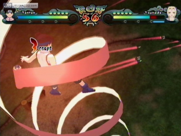 Ce n’est effectivement pas avec cette suite que vous pourrez reprendre la suite des événements du premier Naruto : Clash of Ninja Revolution - European Version, Tomy et Nintendo ayant visiblement décidé de snober le marché européen. A l’inverse, on a droit à l’apparition d’un nouveau méchant, au look atypique et loin d’être en concordance avec les autres personnages de la série. Ce dernier est d’ailleurs accompagné par une kyrielle de ninjas secondaires, jouables également par le joueur, notamment Komachi et Towa, deux Anbus à la command list plutôt efficace à défaut eux d’être charismatiques. Quoiqu’en dise, Naruto : Clash of Ninja Revolution 2 - European Version parvient à nous faire oublier le casting rachitique de son prédécesseur avec pas moins de 35 personnages disponibles. Evidemment, pour donner un semblant de challenge au joueur, la moitié des ninjas sont à débloquer en se lançant dans l’aventure du mode "Story". Une façon comme une autre de nous imposer cette histoire écrite en deux minutes et qui n’est là que pour justifier l’enchaînement de combats aussi passionnants qu’un épisode de Derrick. Paix à son âme. Car ce n’est pas avec Naruto : Clash of Ninja Revolution 2 - European Version que la série a décidé de se faire une petite cure de jouvence, loin de là même. Le gameplay reste certes efficace et son accessibilité fait partie des ses atouts majeurs, mais il faut quand même être bien indulgent pour laisser passer une telle fainéantise de la part des développeurs qui nous recyclent la même tambouille depuis 2003. Toutefois, on note quelques réajustements repris des derniers volets japonais comme la possibilité de switcher de personnage lorsqu’on combat en équipe. Histoire d’ailleurs d’apporter un peu plus de punch à ces affrontements en duo, il est même possible de combiner certaines attaques, ce qui apporte un peu plus de fraîcheur à la série. Pas de quoi non plus sabrer le champagne, la base reste identique depuis plusieurs années. Graphiquement, le titre n’a pas évolué depuis six ans. Le moteur commence à se faire vieux et la modélisation – assez cubique – des ninjas ne fait que s’accentuer d’épisode en épisode, ce qui prouve bien que la série a cruellement besoin d’un petit coup de chiffon pour redonner un peu de brillance à l’ensemble.