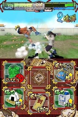Graphismes en 3D, habillage similaire, gameplay à peu près identique, à première vue, Naruto : Ninja Destiny apparaît comme la réplique miniature des épisodes de Naruto Gekito Ninja Taisen! sortis sur GameCube dernièrement. Si en plus l’éditeur se nomme Tomy ou plutôt Takara Tomy, le lien entre les deux franchises est aussitôt établi. Mais il s’agit-là que de la face visible de l’iceberg, car une fois la cartouche de Naruto : Ninja Destiny insérée dans sa DS, le résultat n’est plus du tout le même…