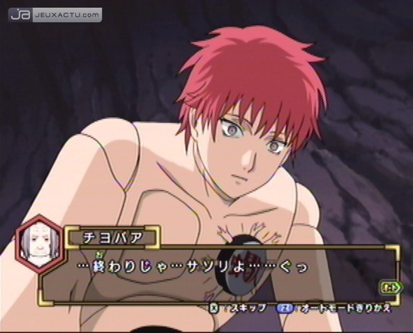 Dans le précédent Naruto Shippuuden Gekito Ninja Taisen! EX, l’histoire s’était arrêtée au moment de la capture de Gaara par Deidara et Sasori, ce qui lui a valu un casting honteusement rachitique de 14 personnages ! Repartir de rien pour ajouter chaque année des personnages supplémentaires, voilà l’excuse toute trouvée pour que les aficionados cassent leur tirelire systématiquement. Une astuce marketing qui semble avoir mis tout le monde d’accord quand on voit arriver les épisodes nouvelle génération de DBZ et Naruto. Facile, trop facile. Mais revenons à nos moutons car nous aurons le loisir de crier au scandale le moment venu. Le scénario de Naruto Shippuuden Gekito Ninja Taisen! EX 2 reprend pile poil là où s’était arrêté le précédent volet jusqu’au combat entre Naruto et Orochimaru. On ne peut pas faire plus juste en timing puisque les épisodes 40 et 41 de la série animée ont été diffusées il y a quelques jours au Japon et se clôturaient justement par cet affrontement entre ces deux protagonistes. Grâce à ce prolongement de l’histoire, le nombre de personnages a été revu à la hausse et l’on peut désormais annoncer avec soulagement que le jeu dispose de 30 protagonistes au total ! Si c’est un plaisir de retrouver Chôji, Shino, Kiba, Hinata, Tsunade, Jiraya (paix à son âme), on retiendra avant tout le retour de Sasuke remis au goût du jour, l’arrivée de Sai, Yamato, Sasori dans sa transformation ultime et surtout Kabuto, un personnage injustement boudé jusqu’à présent ! Ceux qui espéraient pouvoir prendre le contrôle de grand-mère Chiyo risquent en revanche d’être déçus, 8ing n’a visiblement pas jugé utile de la faire apparaître dans le casting. Que c’est regrettable.
