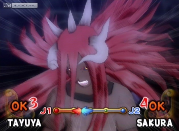 Oui, trois longues années, c’est le temps qu’il a fallu attendre pour que Bandai Namco Games daigne enfin livrer ce Naruto : Ultimate Ninja 3 sur le Vieux Continent. Toutefois, nul besoin de faire jaillir sa rancœur du fin fond de ses entrailles, les deux éditeurs se contentent simplement de caler la sortie du jeu à la diffusion du dessin dans l’Hexagone, même si Game One s’apprête d’ores et déjà à diffuser la nouvelle saison Shippuuden d’ici quelques jours. Toutefois, pour ceux qui suivent les nouvelles aventures de Naruto assidûment, la sortie de Naruto : Ultimate Ninja 3 est l’occasion de faire un petit bond dans le passé, à l’époque où Sasuke ne faisait pas le poids face à Orochimaru. Pas de surprise donc côté casting, on retrouve la plupart des protagonistes qui ont participé à la recherche active de Sasuke, pris dans les filets des sbires de l’infâme Orochimaru. Alors que l’épisode deux proposait un total de 32 personnages, Naruto : Ultimate Ninja 3 joue la carte de la surenchère et affiche pas moins de 40 ninjas ! Un chiffre assez impressionnant et qui permet maintenant de prendre le contrôle de persos inédits tels que Jirôbô, Kidômaru, Tayuya ou bien encore Kimimaro. Avec l’introduction des ninjas d’Oto no Kuni, le jeu gère désormais les transformations en temps réel. En réalisant – avec succès – certains jutsus, il est en effet possible de métamorphoser certains personnages qui garderont leur seconde forme pendant tout le restant du combat. Naruto, Sasuke, Jirôbô, Kidômaru, Tayuya, Kimimaro, et même Rock Lee, chacun d’entre eux dispose d’une nouvelle palette de coups et de jutsus une fois transformé. Toujours dans un souci d’authenticité, le studio CyberConnect2 a intégré des phases d’action aux commandes des Bijûs et des créatures invoquées par leurs maîtres telles que le crapaud de Jiraya, le serpent d’Orochimaru ou bien encore la limace de Tsunade. Evidemment, l’intégration de ces petits bonus permettent de rendre les combats encore plus dynamiques qu’ils l’étaient auparavant, même si un sentiment de déjà-vu plane au-dessus de Naruto : Ultimate Ninja 3.