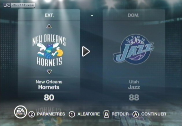 A l’instar de Table Tennis, le titre d’Electronic Arts propose deux types de configurations. La première appelée Commandes familiales se joue uniquement avec la Wiimote et consiste à se focaliser sur son jeu, à savoir les passes, les dribbles, les dunks et tout le reste des mouvements. Pour les déplacements, c’est l’ordinateur qui est maître de décision et il ne tient donc qu’à nous de composer avec ce qu’il a envie de faire. Si les passes se réalisent en appuyant sur la touche A, les mouvements de type dunk et autre lay-up se font en bougeant la Wiimote, soit du haut vers le bas, ou soit de la gauche vers la droite. Rien de plus complique sur le papier certes, mais le résultat à l’écran est d’un tout autre acabit, surtout quand on sait qu’il existe deux petites secondes de latence entre le geste du joueur et ce qui se passe à l’écran. C’est pourquoi, il est chaudement recommandé de choisir le type de commandes avancées, où l’entrée du Nunchuk permet de contrôler ses joueurs. C’est peut-être plus naturel mais ce n’est encore pas la bonne méthode pour que la Wii puisse enfin briller en dehors des jeux signés Nintendo. Si ce ratage complet fera rire toute la galerie, il est assez navrant de voir à quel point les développeurs ont méprisé, voire peut-être même saboté, leur travail tant le résultat est affligeant.