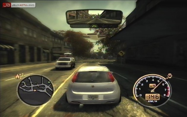 A l’exception prête qu’il se joue sous la lumière du soleil et non sous la clarté de la lune, Need For Speed : Most Wanted n’est pas sans rappeler un certain Midnight Club 3 : DUB Edition. L’environnement où vous aller sévir est en effet totalement ouvert, et toutes les routes sont bonnes à prendre pour vous rendre d’un pari à l’autre, ou encore pour emmener votre voiture à l’atelier pour la booster ou lui soulever la jupe et tout lui refaire jusqu’à sa prise d’air de toit. Faisant flasher quelques radars sur votre passage, vous allez vite vous attirer l’attention de la police locale et faire monter votre côte de recherche en flèche. Quittant les larges routes pour emprunter les ruelles plus escarpées où les véhicules auront du mal à vous suivre, vous pourrez user de zones interactives pour détruire le décor sur votre passage et ainsi immobilier un agent vous collant de trop prêt en faisant par exemple s’écrouler un château d’eau ou en faisant exploser une station service. Entre deux défis pour faire grimper votre nom au sommet de la Liste Noire, les interludes avec les forces de l’ordre se révèlent alors vite être la part la plus intéressante du gâteau. Malheureusement, à moins d’en faire exprès pour prolonger le plaisir, il est vite facile de semer ces policiers à l’intelligence aussi creuse que les donuts qu’ils ingurgitent, et rares sont les poursuites qui s’éternisent, celles-ci pouvant parfois se terminant en se mettant tout simplement à l’arrêt dans une rue qui ne figure pas dans les rondes des forces civiles. Pour ne rien gâcher, ou plutôt si, les rues de la ville sont aussi désertes que les plages en hiver et rares seront les véhicules qui viendront habiller les routes de cette campagne profonde. A vrai dire, cela fait bien longtemps que les Need For Speed ont abandonné le trafic qui a pourtant fait parti des éléments clés de ses débuts, et cela est bien dommage. Justifiée de nuit, cette volontaire sensation de vide passe en effet beaucoup moins bien de jour, surtout quant on nous laissait espérer croire au fameux retour de ces civils.