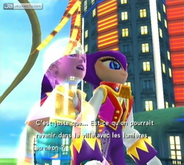Techniquement, on regrette que la qualité d’un Super Mario Galaxy fasse encore figure d’exception sur Wii. NiGHTS : Journey of Dreams ne fait pas vraiment honneur au travail artistique mené en amont. Même si lancé à pleine vitesse, le jeu nous donne l’impression de nager au milieu d’explosions colorées aux effets pyrotechniques plutôt plaisants, le moindre temps mort ou la première cut-scene venue nous ramènera bien vite sur Terre. En y regardant de plus près, on constate bien vite le manque de soin général apporté aux textures qui pourront franchement apparaître comme grossières à certains moments. De même, les différents modèles 3D n’ont semble-t-il pas été créés pour faire l’unanimité, car ce qui pourra être ravissant en artworks ou en CG est tout simplement raté une fois plongé l’interactivité de Nightopia. Heureusement le Monde des Rêves se laisse encore traverser agréablement, puisque du côté de la prise en main, aucune surprise n’est à signaler. C’est simple et intuitif. NiGHTS : Journey of Dreams utilise en tout et pour tout qu’une seule touche en plus de l’outil de déplacement (pointeur de la Wiimote – Vision Mentale ici – lorsqu’elle est utilisée seule, ou stick analogique pour les autres configurations), ce qui le rend évidemment accessible au plus grand nombre. Les heureux joueurs ayant goûté au premier opus retrouveront sans peine leurs marques et la palette de mouvements si caractéristique du virevoltant bouffon violet. Drill Dash pour foncer vers les Nightmarens, Paraloop pour les envoyer dans le My Dream ou pour s’emparer des Blue Chips environnant. Rien de bien nouveau en somme, si ce n’est l’apparition des Personas, un ajout dont l’intérêt peut sembler quelque peu superflu. Une fois équipé d’un de ses masques, NiGHTS disposera d’aptitudes supplémentaires qui nous ont seulement permis de venir à bout de deux boss, ce qui est bien maigre pour un de seules éléments inédits de ce Journey of Dreams. Car ne nous y trompons pas, cet épisode est avant tout un prolongement de Into Dreams, avec toujours ces mêmes rails liberticides qui peuvent malheureusement paraître désuets à notre époque. De la même manière, la durée de vie en ligne droite est toujours aussi brève, comptez 7 heures de jeu environ, même si les plus fans savent que la replay value passera forcément par la recherche ininterrompue de la note maximale.