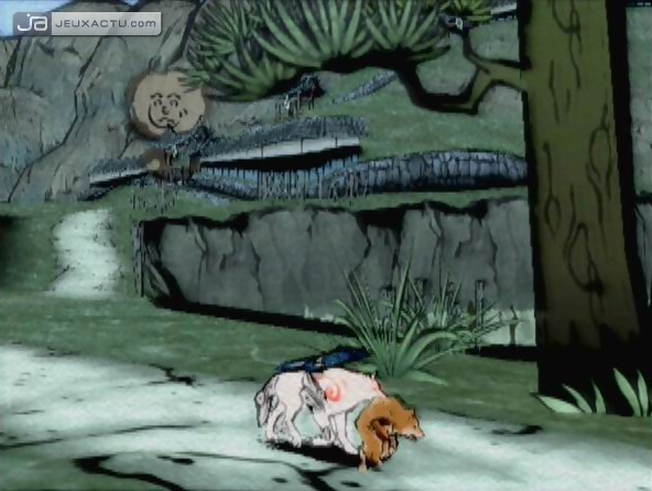 L’enfance des premiers gribouillis trouve ici un sens quand, avec une grande application, les points sont apposés sur l’œil manquant d’une peluche, ou lorsque avec fierté, le joueur complète une constellation pour voir apparaître un animal à la génétique divine (on est bien loin des Chevaliers du Zodiaque…). Une satisfaction certaine peut être aussi éprouvée quand le graffiti sur un mur n’est autre que le masque dessiné de votre pousse adroit pour pouvoir pénétrer la tanière ennemie. Apporter le bien être en composant avec la nature vous sera peu à peu permis au fil de vos aventures, et c’est non sans espoir que nombreux sont ceux qui accorderont leur foi au dieu loup. Difficile pour les messieurs de décrocher du jeu lorsque les vœux d’une plantureuse prêtresse vous seront exposés tels les beaux fruits que la nature peut nous offrir. Ainsi vous observerez Issun, grand amateur de douceurs dire ou plutôt exprimer dans le langage yaourt : "Oh les beaux melons !" (oui, Issun aime les métaphores…). Pas besoin de comprendre la langue du yaourt pour saisir les sentiments de joie, de tristesse, de peur ou de mélancolie. La superbe musique du jeu permet à elle seule de saisir la large palette émotionnelle du genre humain. Exit donc les voix-off à traduire dans toutes les langues ce qui est sans aucun doute un facteur d’économie sans pour autant nuire à la qualité du jeu. La patte de Clover est bien perceptible avec les petits trèfles déterrés lors de vos errances, qui font allusions au logo du studio en marge de disparaître (une décision de Capcom bien discutable après un tel chef-d’œuvre).