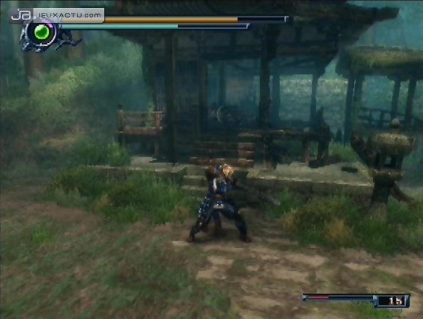 Les affrontements sont nettement moins brouillons que dans l'opus précédent, grâce à une révision du lock salutaire. En maintenant R1 enfoncé, il est dorénavant possible de cibler précisément un adversaire avec le stick analogique droit. Mieux encore, la fenêtre des coups a été prise en compte, ce qui induit des dommages collatéraux bien utiles en cas d'attaque massive des Genma. L2 permet de réaliser des esquives rotatives à l'ancienne, tandis que Triangle permet d'amorcer les criticals. A l'instar d'Onimusha : Demon Siege, chaque ennemi vaincu donne droit à une poignée d'âmes multicolores à aspirer le plus rapidement possible. La palette utilisée est la même : le bleu pour remplir la barre de vie, le jaune pour blinder la barre de magie, le rouge pour faire grimper les points d'expérience, et le violet pour la barre Onimusha. Personnage principal du jeu, Soki hérite naturellement de toutes les attentions et son niveau d'expérience augmente assez rapidement par rapport au reste de la troupe. Un décalage qui se crée de façon quasi automatique dès qu'un jeu laisse le choix au joueur de faire évoluer ses personnages comme bon lui semble. Dans le doute, il est préférable de faire progresser ses avatars de façon équitable, histoire d'avoir les reins assez solides si le scénario impose des combats avec tel ou tel personnage. Cependant, on remarque que le level des persos augmente en sous-marin alors qu'ils ne combattent pas forcément. L'écart entre el melo melo de la honda et les autres est conservé de façon proportionnelle pour que ça passe mieux, mais la feinte est quand même cramée. A partir d'un certain niveau de compétence, les techniques de base peuvent débloquer de nouveaux coups. Concernant Soki, Whirlwind, Blade Jab, Slam, H. Splitter et P. Sword sont les mouvements spéciaux supplémentaires à dénicher. Autre gourmandise au rayon nouveauté : tous les personnages peuvent désormais invoquer la puissance divine des Oni via L3+R3, même si Soki - logique - demeure le seul à se transformer en véritable Onimusha. Pour finir, on peut évoquer les fameux Test of Valor, sorte de minis challenges dans lesquels il faut abattre l'ennemi ou réaliser des techniques particulières dans le temps imparti. Prises au sérieux, ces épreuves permettent de remporter pas mal d'équipements de luxe.