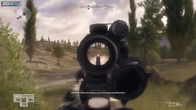 Heureusement, les moments d'action ne sont pas absents pour autant. La campagne solo, comme les missions annexes destinées à être jouées en ligne, se focalise sur un groupe d'infanterie constitué de quatre soldats. De base, cette unité Bravo regroupe un fantassin, un grenadier, un éclaireur et un mitrailleur. Il est possible de changer la classe de chaque perso, mais surtout de faire incarner chacun d'entre eux par un joueur différent. Nous ne saurions trop vous conseiller de jouer en coop, car le jeu est nettement plus intéressant ainsi. En solo pur, on doit subir une IA alliée pas toujours finaude. Nos coéquipiers virtuels ne sont ni très malin, ni très efficaces. On passe donc son temps à les soigner et à aligner des cibles dont ils auraient très bien pu s'occuper en théorie. Le système de soins évite évidemment toute hérésie à base de santé qui remonte d'elle-même, et complexifie même le traditionnel système de medikits. La première application d'un bandage arrête le saignement (qui aboutit à la mort si on ne fait rien), et il faut un deuxième soin pour recouvrir la pleine santé. Tout cela immobilise le soldat pendant un laps de temps non négligeable, qui peut au final lui être fatal s'il reste des ennemis dans les environs. Un double système d'ordres enrichit l'aspect tactique du jeu. La première roue de commandement permet de donner une douzaine d'ordres différents à nos frères d'armes (tenez la position, suivez-moi, contournez par la gauche...) tandis que la seconde, plus rarement utilisable, sert à demander du soutien (mortier, frappe aérienne, fumigènes...). Les maps étant très vastes, le joueur peuvent vraiment aborder chaque objectif de différentes manières. Attention pour cela à éviter le mode de difficulté "normal", car les points de passage les plus adéquats sont alors indiqués à l'écran. Les modes "expérimenté" et "hardcore" sont donc nettement plus intéressants, surtout le dernier qui supprime toute indication visuelle à l'écran. Il faut alors porter une réelle attention aux ordres de missions qui nous sont donnés. Impossible de le contester, Operation Flashpoint : Red River est nettement plus riche, ouvert et réaliste que le FPS de base. Mais il sait aussi flatter les instincts callofdutiesques du joueur moyen, en lui proposant un système d'expérience permettant de débloquer de meilleurs équipements au fil du temps ("paramètres classe") et même d'améliorer les performances du héros qu'il contrôle ("progression joueur"). Un bon compromis a donc été trouvé, et tout le monde devrait pouvoir y trouver à peu près son compte.   A peu près seulement, car il subsiste quelques regrettables lacunes. Au delà des problèmes d'IA, on aurait ainsi apprécié de pouvoir se pencher sur le côté lorsqu'on est planqué derrière un obstacle (le "lean" nous semble indispensable dans un titre prônant le réalisme), tandis que les adeptes de véhicules regretteront le parti-pris "tout infanterie" de l'aventure. Mais au final, la nouvelle direction prise par la série Operation Flashpoint depuis le deuxième épisode prouve tout de même sa pertinence.