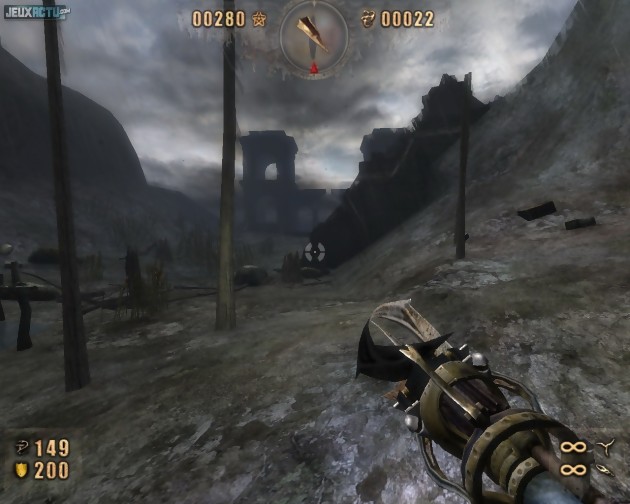 Si l'on fermera les yeux sur les apparitions magiques d'ennemis, bien pratiques pour les développeurs en manque d'imagination, on n'excusera guère leur bêtise artificielle. C'est bien simple, tous les monstres semblent obéir à une seule et unique routine de comportement : foncer droit sur le joueur. Vraiment tout droit, et en toutes cirsconstances ! Comprenez par là qu'il n'est pas rare de voir des monstres bloqués par un élément de décor placé entre eux et vous. Ils s'agglutinent alors contre l'obstacle et ne pensent même pas à le contourner. Quelquefois, les tirs de ceux placés à l'arrière viennent carrément frapper et abattre leurs collègues situés à l'avant. C'est assez rigolo à voir, surtout quand on n'a pas payé le jeu tout du moins. Ceux qui ont vidé leur porte-feuille pour se le procurer risquent de faire grise mine face à un tel spectacle. Même certains boss souffrent de ce problème, à un détail près : du fait de leur taille imposante, ils ont tendance à traverser partiellement les obstacles, ce qui ajoute encore au ridicule. Ces bugs viennent compléter une collection déjà très fournie par ailleurs. Ainsi, il arrive également au joueur de se retrouver coincé dans les décors, bien malgré lui. Dans ce cas, la seule solution consiste à recharger une partie. Le jeu prend parfois des initiatives encore plus radicales et nous balance sans ménagement sous Windows (message "Fatal Error" et autres joyeusetés). A ces soucis d'ordre technique viennent s'ajouter quelques problèmes plus conceptuels. On pense notamment à l'architecture maladroite des niveaux. Manifestement désireux d'éviter l'effet couloir, les développeurs nous ont concocté des maps sans queue ni tête, dans lesquelles on se perd parfois et qui multiplient les obstacles inopportuns. Appuyer dix fois sur la touche de saut avant de réussir à grimper sur un rocher ou voir les ennemis buter misérablement sur le moindre élément de décor un peu bas n'a franchement rien d'agréable.