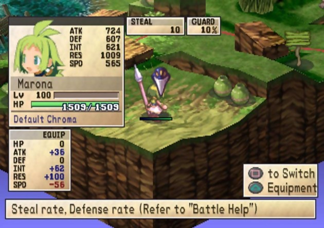 Marona vit sur Phantom Island, petite île tropicale au sable fin et à l’eau turquoise, isolée en plein cœur du monde d’Ivoire. C’est ici votre base, dans laquelle vous allez gérer votre équipe au mieux avant de partir à l’aventure. L’objet clef de ce petit coin de paradis se trouve être votre boite aux lettres. C’est là que vous réceptionnez les messages marins de vos employeurs. Grosso modo, à chacun des 20 épisodes (répartis sur quatres chapitres) correspondent un de ces petits boulots surnaturels. Il est temps de se plonger tout entier dans le système de combat concocté par les développeurs car c’est bien ici que se situe tout l’intérêt de Phantom Brave, bien au-delà d’une réalisation comme toujours désuète, avec certes des illustrations toujours plus belles et détaillées pour les cut-scenes, mais dans les faits nous nous retrouvons toujours devant une 3D isométrique pas folichonne avec des modélisations du siècle dernier. Cependant qui oserait en faire un cheval de bataille pour dénigrer un soft qui a tout d’un ténor du genre ?