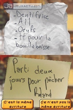 6,8 millions, c’est aussi le nombre alléchant d’acheteurs potentiels de ce petit jeu d’aventure écrit avec le concours des scénaristes de la série. De quoi décrocher un sacré magot en cas de succès. Avec un potentiel commercial aussi fort, il est dommage que les développeurs de Plus Belle la Vie : Le Secret du Dr Livia ait réduit drastiquement les budgets afin que la rentabilité soit maximale. Aussi peu inspiré et grotesque que le calvaire que vous inflige vos beaux-parents lorsque vous passez dîner chez eux, Plus Belle la Vie : Le Secret du Dr Livia pioche dans les mêmes ingrédients qui confortent son succès chaque soir, à 20h20 pétantes. Prenez des histoires d’amour extra-conjugales, du fait divers en veux-tu en voilà, du banditisme de bas-étage, un soupçon d’ésotérisme, le tout orchestré par une panoplie de personnages radiés sur dix générations de l’Actors Studio et lié par des dialogues monstrueusement creux, et vous aurez une idée précise du grand n’importe quoi narratif auquel nous sommes confrontés ici. Aucun doute, les initiés trouveront vite leurs repères, mais encore faut-il qu’ils soient convaincus d’une part par l’absence totale de tension durant la petite heure que dure l’intrigue, et d’autre part le désert ludique offert par ce titre. Simili-Point’n click, Plus Belle la Vie : Le Secret du Dr Livia est incapable de faire appel à nos neurones pour le bon déroulement des événements qui nous sont contés pour la simple et bonne raison que l’interaction avec l’écran tactile se limite une grande partie du temps au défilement des lignes de dialogues nécessaire à la progression. Les concepteurs ont omis d’intégrer la moindre énigme, le moindre casse-tête, si bien qu’il suffit de faire causette avec tous les personnages présents à l’écran pour que les investigations de Chloé, l’héroïne du jeu, se poursuivent. Impossible de se perdre ou de rester bloqué, le jeu ne nous permettant pas de nous déplacer tant que la totalité des actions à effectuer en un lieu ne l’ont pas été. S’il vous arrivait tout de même d’être pris en défaut, un PDA est présent pour rappeler l’objectif du moment, tandis qu’une icône en forme de point d’interrogation est disponible pour vous indiquer quels sont les éléments interactifs. Bref, pas de quoi satisfaire une Tatie Danielle en plein rajeunissement cérébral en compagnie du docteur Kawashima, surtout qu’il suffira d’un aller, puis d’un retour dans le RER pour que le secret du Dr Livia éclate au grand jour.