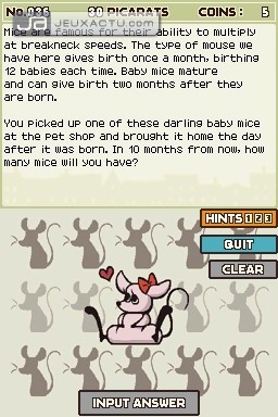 Le ton est donné dès le début, quand retrouver le chemin du village est l’occasion de découdre avec une énigme. Une autre devinette est aussi lancée pour pouvoir traverser le pont qui y mène. Côté gameplay, à la manière d’un point & clic classique, les interactions avec les habitants se font d’une simple touche du stylet. Sans grande surprise, presque tous les dialogues se solderont par des problèmes à résoudre. Pour se déplacer sur la carte du village, l’icône représentative qu’est la vielle chaussure en bas à droite de l’écran vous permet d’afficher les possibles directions qu’il faudra choisir d’un contact du stylet avec le point concerné. Le village n’est pas très grand, et il faudra à maintes reprises faire des allers-retours au gré des chapitres. A l’aide du stylet, chaque écran pourra être examinés sous toute les coutures pour trouver des énigmes cachées ou autres "hint coins", monnaie d’échange permettant au moins patients d’obtenir jusqu’à trois indices par énigmes. A chaque logique trouvée, le joueur gagnera des picarats. A chaque tentative ratée, le nombre de picarats en jeu diminue, pour s’arrêter au minimum de gain possible (sans jamais atteindre 0 pour ne pas déprimer). Au total, pas moins de 132 énigmes sont à découvrir, dont 15 en bonus. Heureusement, des chargements de console à répétition pourront être évités, car il n’est pas obligatoire de toutes les résoudre, et il sera toujours possible de se rendre dans la vieille bicoque de la vieille Ruddleton afin de rattraper les échecs. Mais à vrai dire les plus curieux mettront de l’entrain à collectionner le plus de réussites, afin de venir à bout des quelques quêtes annexes, telles que la construction d’un automate, l’assemblage de morceaux de toile former un tableau, l’acquisition d’objets par les habitants pour adapter au mieux les chambres d’hôtel des deux héros selon leurs goûts. Petite cerise sur le gâteau permettant de prolonger la durée de vie du jeu, l’éditeur optimise les possibilités offertes par la DS puisqu’il est possible de télécharger quelques énigmes supplémentaires. Dommage qu’il n’y ait pas de mode multijoueur pour donner plus de fun au genre.