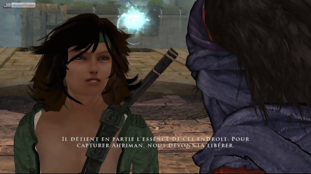 Il va falloir faire son deuil : Farah n'est plus, ou presque. Prince of Persia montre une telle volonté de se démarquer de ses prédécesseurs, qu'il n'hésite pas à réduire l'ex-princesse au rôle d'âne porteur d'or et de misère. On a connu des divorces nettement plus amicaux. Broyé par une tempête de sable devenue la meilleure amie d'Ubisoft Montréal ces dernières années, le désert laisse apparaître progressivement un Prince de Perse qui ne va pas tarder à mesurer l'ampleur de la tâche qui l'attend, malgré une perte de charisme irréfutable. En compagnie d'Elika, il va devoir juguler une à une les forces obscures de la Corruption, toutes ravivées par la renaissance du seigneur Ahriman. En fait, le scénario de Prince of Persia s'appuie sur la mythologie perse et ses figures divines connues des adeptes du zoroastrisme. Si le mal est incarné par le démon Ahriman, l'ordre et la paix sont ici représentés par le dieu Ormazd et l'Arbre de Vie. Sans en dire trop sur le storyline de Prince of Persia qui est loin d'être profond, les deux protagonistes devront affronter successivement L'Alchimiste, Le Chasseur, Le Guerrier et La Concubine, les quatre fidèles serviteurs d'Ahriman qui ont accepté d'échanger leur âme contre l'immortalité. Débutant sur un rythme plutôt calme, le titre imprime ensuite une allure un peu plus vive, contrairement à Assassin's Creed qui commençait dans le spectaculaire avant de finir dans la douleur ; on exagère à peine. Prince of Persia se montre suffisamment malin et intelligent pour ne pas griller toutes ses cartouches dès le départ, et parvient même à nous surprendre avec un combat contre le boss de fin sympathique. Et au moment du générique de fin, on ose croise que les développeurs d'Ubisoft Montréal sauront monter en puissance tout au long d'une trilogie qui semble déjà disposer d'assez de matière - du moins sur le papier - pour créer une aventure immersive. Ce qui n'est malheureusement pas le cas pour ce premier épisode pour être honnête.