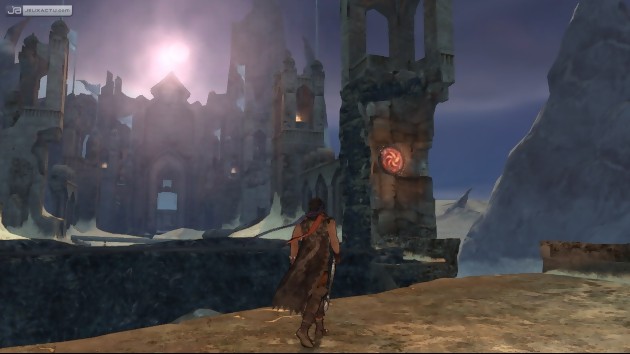 Avec un minimum de skill et de sang froid, on réussit tout de même à trouver des failles irréversibles comme les contre-attaques que l'on distribue à l'œil. Hormis les petites chutes de framerate que l’on observe ici et là, c’est surtout le fait d’utiliser systématiquement les mêmes attaques qui interpelle. Avec des ennemis qui ne changent jamais de stratégie d'attaque, il devient alors facile de les mettre à genoux en à peine deux minutes. Quelques QTE bien placés feront sérieusement transpirer, mais il est évident que Prince of Persia n'a pas le profil-type du jeu insurmontable. L'un des aspects positifs du système de combat par contre, c'est l'interactivité des décors qui a une incidence directe sur le comportement du Prince de Perse et des monstres contre lesquels il lutte. Coincer son vis-à-vis contre un pilier de béton procurera un avantage certain, de même que le repousser au bord d’une plate-forme permettra de l'éliminer d'un coup d'un seul. Prince of Persia laisse une certaine liberté d'exploration au joueur, si bien qu'il est possible de visiter les zones du royaume dans l'ordre que l'on souhaite. Toutefois, afin de conserver un minimum de cohérence, des sphères de lumière devront être récupérés pour à la fois augmenter la force de frappe d'Elika, et lui permettre d'accéder à de nouveaux pouvoirs indispensables pour explorer certains endroits d'habitude inaccessibles. On vous laisse les découvrir, c’est du lourd. En ce qui concerne la durée de vie de Prince of Persia, elle est artificiellement gonflée par la récolte de ces fameuses perles lumineuses ; 9 heures de jeu nous auront été nécessaires pour boucler l’aventure, avec 643 boules en poche. Le tout dans une ambiance musicale qui réussit le tour de force de nous rappeler que Prince of Persia est originaire du Moyen-Orient. Oui, on l’avait oublié.
