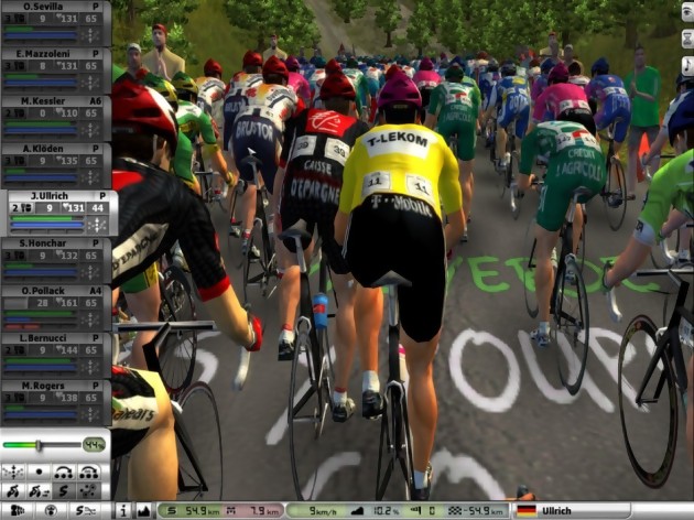 Sport populaire, le cyclisme a le vent en poupe en cette période de l’année où les vacanciers se massent en nombre au bord des routes pour espérer glaner quelques cadeaux de la caravane publicitaire ou tout simplement pour encourager leur coureur favori. Composé d’une vingtaine d’étapes plus variés les unes que les autres grâce à la morphologie toute particulière de nos paysages urbains et de nos campagnes fleuries, la grande boucle est l’épreuve reine et c’est un réel plaisir de profiter enfin de la licence officielle et donc pas récurrence des véritables noms des coureurs qui vont avec. La base de donnée a toutefois été épargnée par les affaires polémiques de dopage qui ont fait tomber toutes les têtes d’affiche avant le grand départ et évidemment des incertitudes planant sur le vainqueur de cette année, Floyd Landis. Malgré cet attrait pour ce sport, Pro Cycling Manager : Saison 2006 reste avant tout destiné à un marché de niche et conviendra parfaitement aux amateurs de la discipline. Autant dire qu’ils pourront se le procurer (presque) les yeux fermés… pour peu qu’ils ne possèdent pas la monture précédente. En effet, les ajouts ne sont pas suffisamment significatifs. Peu de changement sur le plan de réalisation, si ce n’est que le public est un peu moins statique et que l’on a droit à deux nouveaux angles de vues (dont la vue aérienne) qui franchement n’apportent pas vraiment grand-chose au jeu. La durée de vie, potentiellement déjà énorme, est encore rehaussée avec presque 200 nouvelles étapes (soit environ 500 épreuves en tout). Pas de quoi cracher dessus cela dit mais on regrette vraiment que les développeurs ne se soient pas attaqués aux problèmes de fond qui gangrènent la série depuis des années. Que dire de cette bande-son et de ces commentaires qui ne procurent uniquement de bonnes vibrations une fois le haut parleur est éteint ? Que dire de ces plantages et retours sous Windows énervants ? Pourquoi les temps de chargement avant chaque course sont-ils toujours aussi longuets ? Pourquoi l’interface est toujours aussi confuse ? Beaucoup de questions qu'on espère évincées dans la prochaine édition.