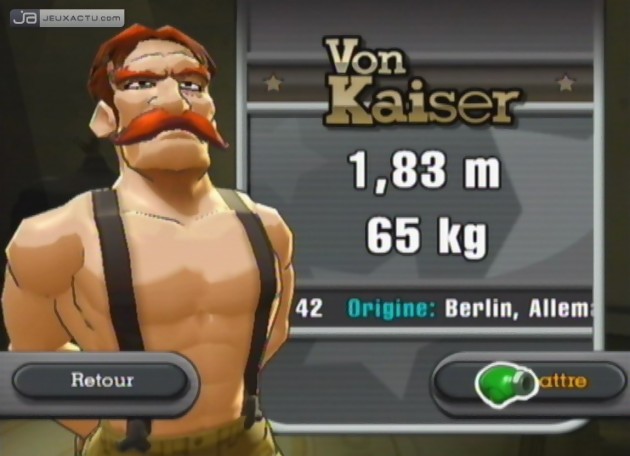 Punch-Out!!, tout le monde connaît. Lorsque l'on a eu la chance d'avoir une NES à la maison, incarner le petit Little Mac relevait quasiment du devoir national. Pourtant, Punch-Out!! premier du nom n'affichait pas une réalisation du tonnerre, mais proposait un gameplay solide, cohérent et archi-addictif, ce qui rendait forcément les nuits beaucoup plus courtes. Une accoutumance qui s'expliquait surtout par le fait de devoir trouver le ou les points faibles de l'adversaire pour passer au match suivant. Cela pouvait ne prendre que quelques minutes pour les plus rageux, mais nombreux sont ceux qui ont buté des heures sur Soda Popinski, Super Macho Man ou bien encore Mr Dream pour ne citer que ceux-là. Avec le recul, on se demande encore comment on a pu galérer sur des piquets aussi rigides, mais force est de constater que la férocité de leurs attaques était beaucoup plus prononcée que sur Super NintendoSuper Punch-Out!! donnait l'impression d'avoir perdu une testicule. Hormis les frangins Kruiser capables de briser une mâchoire rien qu'en fixant leur adversaire du regard, le jeu s'avérait nettement moins exigeant que son prédécesseur, avec des patterns facilement déchiffrables. Terrasser Gabby Jay en une vingtaine de secondes n'avait rien de surprenant, mais faire craquer Narcis Prince au bout d'un round sans sourciller alors que l'on combattait dans l'ultime ligue, ça faisait un peu désordre. En tout cas, la progression dans Punch-Out!! demeure semblable à celle des volets précédents, et il faudra donc donner de nouveau un coup de main à Little Mac pour devenir le plus grand boxeur de tous les temps. Pour y parvenir, il faudra franchir les différentes catégories (Mineur, Majeur, Mondial) du mode "Carrière", chacune abritant quatre concurrents à vaincre, sauf la dernière qui en regroupe cinq. Parmi les guests, on a droit naturellement à de vieilles connaissances telles que Glass Joe, King Hippo, Great Tiger et Don Flamenco, les développeurs s'étant surtout attachés à leur offrir un physique digne de leur réputation. Toutefois, un petit nouveau en la personne de Disco Kid fait son entrée dans le cercle fermé des vilains de la série Punch-Out!!. Pour être franc, on s'attendait à mieux en termes de combattants inédits.