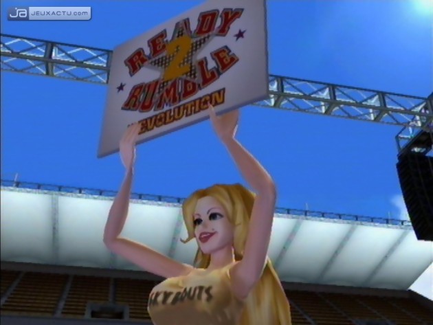 En revanche, ce qui risque de les énerver, c’est la jouabilité du titre. Wii oblige, les contrôles s’opèrent à l’aide de la Wiimote et du Nunchuk. A l’instar du Wii Boxe de Nintendo, il suffit d’utiliser les deux appendices comme de véritables gants de boxe. L’immersion à tout prix, c’est bien le leitmotiv de Nintendo qui a bien l’intention de nous faire suer. C’est bien le cas avec Ready 2 Rumble Revolution et à forte dose puisque les mouvements sont loin d’être reconnus de manière optimale. Direct, crochet, uppercut, esquive et autres petits pas sur le côté, tous les mouvements de la boxe sont représentés dans le jeu, mais à aucun moment, il sera possible de les reproduire à l’identique ; ou alors avec un temps de latence absolu. C’est le principal défaut de Ready 2 Rumble Revolution, rédhibitoire qui plus est, puisqu’il est assez difficile de réaliser des attaques dans le jeu, la faute à une mauvaise reconnaissance des mouvements dans l’espace. Dans le doute et en bon professionnel, on a tendance à se diriger vers le tutorial pour vérifier si le problème ne survient pas de notre façon de faire usage des deux manettes. Mais après un rapide passage par la case entraînement, mais aussi dans les mini-jeux, on se rend rapidement compte que les développeurs ont tout bonnement raté le coche. Bien entendu, en faisant n’importe quoi, on parvient à exécuter quelques coups, mais n’espérez pas balancer des attaques fulgurantes que vous aurez prémédité au préalable, ici, c’est le facteur chance qui entre en jeu. Plus sérieusement, Ready 2 Rumble Revolution ne peut se comporter comme un titre crédible face à une prise en main aussi abjecte. Et c’est d’autant plus regrettable que le jeu s’offre une réalisation correcte, même si on aurait aimé un peu plus de folie dans les décors et une foule qui ressemble davantage à un vrai public qu’une pauvre tapisserie de chambre posée par Leroy Merlin. Quoiqu’il arrive, ce n’est pas cette année que la licence Ready 2 Rumble parviendra à se faire un nouveau nom.