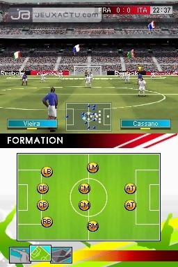 La réalisation de Real Football 2009 fait preuve d'un peu plus de finesse que celle de l'opus précédent : animation un poil plus fluide, character design plus soigné, gestuelle des joueurs plus convaincante, les développeurs de Gameloft se sont mis au football cette année. La qualité des graphismes rappelle les performances de Pro Evolution Soccer sur PSOne, ce qui justifie la présence des coudes et des genoux pointus. On regrettera par contre que Real Football 2009 ne tente pas de focus sur le visage des joueurs, d'autant plus que l'on a aucun mal à les reconnaître sur le terrain. Enfin, certaines phases de jeu sont par moments l'occasion d'admirer de fabuleux amas de pixels, surtout lorsque ça joue au billard en pleine surface de réparation. Quoi qu'il en soit, la prise en main s'avère immédiate, du moins lorsque l’on n'opte pas pour les options tactiles du jeu qui impliquent un dur apprentissage de tous les gribouillis, pour exécuter le bon geste au bon moment. Ce n'est pas un miracle, c'est vrai, mais Real Football 2009 contraint désormais le joueur à faire tourner le ballon pour s'approcher des buts. On le constate dès les premières parties : les grands sprints rectilignes ne suffisent plus à transpercer les défenses adverses, ce qui permet au titre de gagner en réalisme et en crédibilité. Cela dit, on n'atteint pas encore le niveau d'un FIFA 09 où le jeu sans ballon est aussi important que de planter des buts. Les possibilités offertes par les partenaires sont donc nettement plus réduites, surtout en Difficile où l'on se remet souvent au même schéma tactique pour minimiser la prise de risques. L'I.A. n'est pas réellement invincible dès que l'on souhaite corser les débats, mais il est vrai qu'elle a tendance à croquer la balle dès qu'elle le récupère, et tenter des frappes venues d'une autre galaxie. Bref, il y a un vrai problème d'équilibre à ce niveau-là : soit on se retrouve avec des manchots qui essaient de rentrer dans les buts avec le ballon, soit on a droit à des aberrations agaçantes du type dégagement foireux du gardien de but à la FIFA sur Megadrive. Enorme. Excellents aussi les coups francs qui prennent des trajectoires folkloriques, même bien placé, que le joueur soit droitier ou gaucher. En termes de contenu, Real Football 2009 ne propose rien d'extraordinaire avec les classiques Match Amical, Modes de Jeu et Entraînement. On pourra même organiser des séances de penalty pour son plaisir perso, et prendre part aux différentes compétitions que l'on est en droit de trouver dans un jeu de foot. Un mode multijoueur est également de mise, mais ne permet pas de jouer avec une seule cartouche. Quant au jeu en ligne, il faudra également repasser.