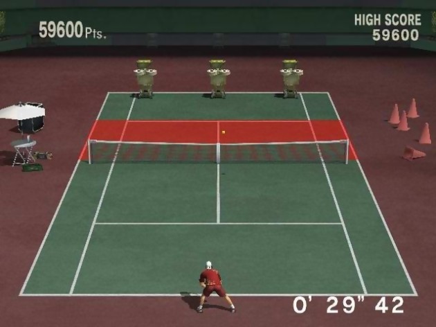 Mode de jeu similaire, même gameplay et réalisation identique, Roland Garros 2005 ne se démarque presque pas du titre dont il s’est clairement inspiré. Quitte à faire une mise à jour, autant prendre un bon jeu comme référence me direz-vous. C’est tout à fait exact mais à ceci près que si Roland Garros 2005 bénéficie du gameplay presque parfait et de l’exhaustivité de son prédécesseur, il hérite également de sa réalisation bancale et de l’absence plus que préjudiciable d’un mode en ligne. Seule véritable nouveauté, un mode vous permet de revivre l’événement dès les phases qualificatives jusqu’à la finale du fameux tournoi. Pour se faire, il faudra préalablement sélectionner votre avatar parmi un listing de 16 professionnels. Si on retrouve en partie les mêmes joueurs - certains ont été poussé vers la porte de sortie comme Serena Williams, Anna Kournikova, tandis que d’autres ont fait leur entrée tels que Sébastien Grosjean - on découvrira également d’autres personnages supplémentaires issus de la série Tekken et Soul Calibur qu’il faudra débloquer au préalable. Quant au reste, il ne faudra pas s’étonner de voir ressurgir le mode "Spectateur" (qui consiste à visualiser une partie de l’ordinateur contre lui-même pour observer son comportement) un mode "Défi" qui se rapproche énormément sur la forme des challenges de Virtua Tennis 2 et l’incontournable "Didacticiel". Bien que très fastidieux, du fait de la répétitivité des différents exercices qu’il propose, Roland Garros 2005 aura au moins le mérite de vous préparer solidement aux différentes épreuves. Proposant de prendre en main la carrière d’un jeune joueur et de le hisser à la première place mondiale, le Pro Tour reste de loin le mode plus intéressant de tous puisqu’il alterne habilement entre les tournois et les entraînements ludiques et variés. A la manière d’un jeu de rôles, votre personnage gagnera de l’expérience en remportant les matchs et en accomplissant avec brio les divers exercices dans les temps impartis. Vous pourrez alors le mettre à profit pour influer sur les capacités et le style de jeu