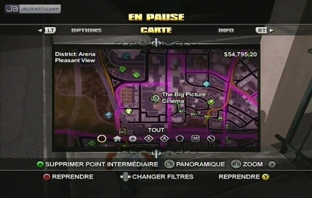Quel dommage de ne pas pouvoir chevaucher de motos ou de se balader librement dans les airs mais le pire concerne sans aucun doute les plans d’eau entourant la ville. A la différence de Grand Theft Auto : Vice City, vous ne mourrez pas bêtement en tombant à la baille, vous pouvez nager afin de rejoindre la berge ou appuyer directement sur Y pour vous téléporter sur terre. Pourquoi cette option sans le moindre bateau ou petite barque à utiliser ? C’est d’autant plus frustrant que les fleuves ou les lacs ne proposent aucune mission ni objets à découvrir. Heureusement, les rues de Stilwater regorgent de véhicules à quatre roues, tous plus différents les uns que les autres que ce soit esthétiquement parlant ou au niveau de la conduite. Si certaines bagnoles sont lentes, elles ont le méritent d’être plus résistantes aux chocs et inversement. Cela ne veut pas dire pour autant que les accidents ne sont que des banals bris de carrosserie. Il n’est pas rare, lors d’une collision frontale, d’éjecter son personnage ou le pilote de la voiture venant en contresens.