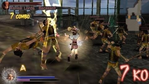 Contrairement à Dynasty Warriors dont la sortie a eu lieu en simultané avec la console, et qui s’avéra bien trop moyen - la faute à un planning précipité - le développement de Samurai Warriors : State of War n’a pas été dicté par un quelconque impératif commercial et ne peut donc en aucun cas se faire excuser de la même façon. Non pas que ce dernier opus de la saga de Koei soit particulièrement médiocre, on est même quelques cieux au-dessus de l’atroce épisode GBA, mais bien que l’équipe de développement ait secoué ses ingrédients de façon plus judicieuse que l’année dernière, Samurai Warriors : State of War ne parvient toujours pas à renouer avec le souffle épique et soutenu qui caractérise les versions de salon. Samurai Warriors : State of War refait donc appel au principe du déplacement case après case, pour des sessions de jeux encore plus courtes que dans l’épisode précédent ! Désormais, votre unité avance par deux ou trois cases afin de conquérir le territoire ennemi. Dès lors que vous rencontrez une case rouge, un défi prend place. Il peut s’agir d’éliminer les capitaines de la troupe ou tout simplement de broyer un certain nombre d’adversaires en temps voulu. Des objectifs malheureusement peu variés qui se répètent inlassablement, mais dont le nombre important ne souffre heureusement pas de temps de chargements qui auraient tôt fait de rendre le jeu infréquentable. Pour mettre un peu de piment dans ce gameplay fragmenté, on aurait bien aimé pouvoir donner des ordres aux alliés, dont la témérité pourra vous coûter cher lorsque la moindre prise de fortifications par le camp adverse se solde par un échec de la mission. Malgré l’ajout de parchemins magiques pour soigner ou lancer une attaque à distance n’importe où sur la carte, le côté stratégique développé en contrepartie de la liberté d’assaut reste donc bien trop timide pour convaincre outre-mesure du bien fondé de la présence de cette série sur PSP. Et c’est bien dommage, car en marge de cela, Omega Force n’a pas été complètement fainéant en imaginant des trames nouvelles pour nos amis de l’ère Sengoku, comme cette alliance entre les clans de l’Est (Takeda, Uesugi, Date, Imagawa, et Honda) contre le despotique Nobunaga. On notera également la présence de tous les personnages de Samurai Warriors y compris les quatre figures devenues jouables dans Samurai Warriors : Xtreme Legends. Enfin, Koei s’est lâché sur les officiers avec plus de 200 partenaires historiques à débloquer en guise de renfort personnel. D’un point de vue strictement bestial, tous ces personnages conservent leur férocité, et en marge de leur habituelle panoplie de combo viennent se greffer des tas de compétences à développer à force d’expérience. En variant ses attaques un minimum, le jeu vous récompensera avec un nombre d’objets bonus plus élevé qu’à l’ordinaire. Seules les voix digitalisées ont été sacrifiées, un détail un peu triste compte tenu du surprenant effort concédé au récit.