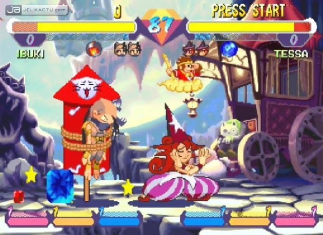Passons l’épisode Street Fighter Alpha 2 Gold qui n’apporte strictement rien, si ce n’est de nouveaux décors et de minimes réajustements dans le gameplay. Non, pour se mettre quelque chose de neuf et de bon sous la dent, il faut directement se jeter sur Street Fighter Alpha 3. Pas moins de 25 personnages sur la grille de départ, des personnages qui se sont affinés, des couleurs un peu plus claquantes et surtout l’arrivée du système de "ISM" (X-ISM, le A-ISM et le V-ISM) permettant de choisir son type de technique, voilà des arguments qui ont permis à cet opus d’obtenir le statut d’épisode culte. Plus nerveux, plus brutal et enfin à la hauteur des techniciens, Street Fighter Alpha 3 reste également le seul argument valable de cette anthologie un peu triste. Alors certes, on peut enfin se délecter du Super Gem Fighter Mini Mix (plus connu sous le nom de Pocket Fighter) sur PlayStation 2 mais l’intérêt reste tout de même très limité. Les attaques ne s’exécutent pas de la même manière qu’un Street Fighter classique et les coups spéciaux des personnages, assez farfelus, comblent tellement l’écran qu’on a affaire à un capharnaüm visuel assez gênant à la longue. Capcom n’a pas jugé utile d’intégrer quelques bonus sympathiques à débloquer, ni même la possibilité de pouvoir jouer en ligne, ce qui est assez regrettable tout de même.