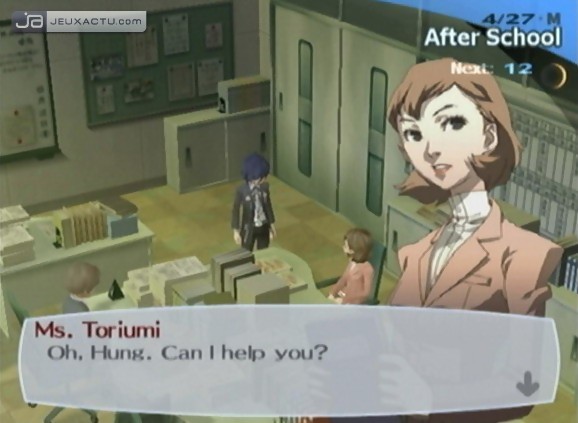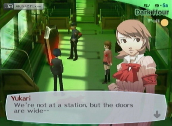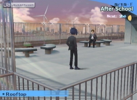 Vous l’aurez sûrement compris, avec Shin Megami Tensei : Persona 3, préparez-vous à laisser au placard une grande partie des codes du RPG japonais tel que vous l’avez connu jusqu’à présent en Europe. Persona 3 réussit l’étrange conjugaison, l’exotique mariage de deux genres typiquement nippons : la simulation de vie lycéenne et le Dungeon-RPG. Deux phases qui semblent bien distinctes aux premiers abords, mais qui couvent pourtant une interaction essentielle sur laquelle nous reviendrons plus tard. Le titre nous impose donc un déroulement bicéphale pour progresser, bien qu’assez libre dans les faits. La journée, c’est la vie d’étudiant qui prime avec un agenda plutôt garnis qu’il faudra apprendre à gérer. En plus des cours dispensés quotidiennement, le titre nous propose une somme assez conséquente d’activités et de relations à entretenir, le tout dans un univers suffisamment convaincant pour que l’on se pique au jeu. Les amateurs de manga et de japanimation n’évolueront d’ailleurs pas en terres inconnues, le titre s’appliquant à nous délivrer un semblant d’adolescence à la japonaise, ponctué de ses tracas, de ses événements, de ses hobbies, le tout orchestré par une galerie de personnages à peine clichés mais ô combien attachants. Les célèbres clubs présents dans chaque établissement scolaire japonais répondent présent, les amourettes avec les très solennels rendez-vous également, sans compter sur les périodes d’examens auxquels il faut participer. La sortie des cours est logiquement chargée, avec son petit lot d’activité et de dates à effectuer. Cependant, gare à ne pas froisser les égos en acceptant plusieurs rancards au même moment, forcément synonyme de posage de lapin. Le titre tire indéniablement sa force de son univers contemporain, et du rythme imposé par le l’année scolaire japonaise. Les examens et autres voyages par exemple se chargent toujours de casser le côté forcément répétitif du titre. En dehors de ces impératifs liés au calendrier, le jeu octroie une bonne dose de liberté pour conduire cette phase de gameplay, ce qui nous oblige assez vite à nous organiser, sous peine de ne pas progresser efficacement. En effet, faire grimper le Social Link qui nous lie à une personne, ou augmenter ses caractéristiques – que sont l’Academics, le Charm et le Courage – est primordial une fois le Dark Hour arrivé, mais les développer à outrance ne se fera pas sans une contrepartie, logiquement matérialisée par la fatigue ici. Outre l’impossibilité d’étudier correctement, cet affaiblissement physique bridera le héros une fois dans les interminables couloirs du Tartarus, puisque la probabilité d’attaques manquées s’en retrouvera augmentée.