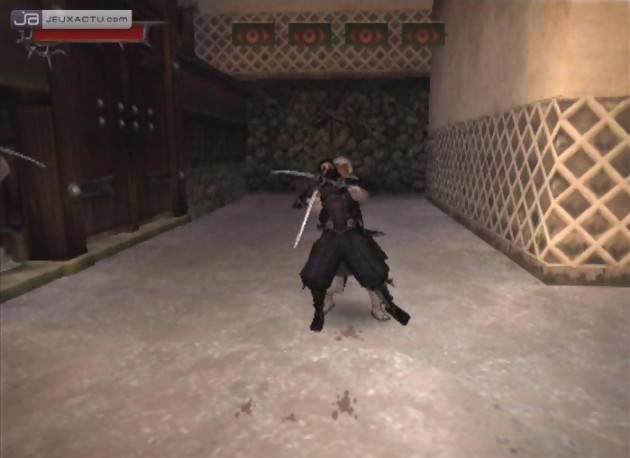 Shinobido : La Voie du Ninja se déroule à la fin du XVIème siècle, dans un Japon d’avant l’unification nationale, et qui connaît déjà les armes à feu et autres explosifs, la poudrière ayant été ouverte quelque temps plus tôt. Naviguant entre le ruisseau de l’authenticité historique du Japon féodal et les remous de l’imaginaire romancé, Shinobido exploite son sujet d’une façon relativement sage, car si le mystique est bien entendu présent, on n’assiste pas pour autant à une surenchère de scènes à base de magie. Les adjuvants sont par ailleurs dénués de pouvoirs surnaturels, bien que le titre de Spike s’ouvre néanmoins à toute une fantaisie acrobatique, permettant au joueur de profiter d’une agilité exceptionnelle et ainsi de se régaler pad en main. Notre ninja, ainsi que sa femelle la Kunoichi, peuvent notamment effectuer un sprint, initialement prévu pour le repli stratégique, mais dont on use et abuse pour prendre de l’élan et effectuer des sauts réellement débridés, courir sur un mur et y rebondir pour s’accrocher aux toits avec une vélocité aussi jouissive que surnaturelle. En contrepartie, les séquences d’attaques au corps à corps se limitent à quelques enchaînements assez grossiers que l’on peut varier avec des projectiles, des coups aériens, mais surtout des projections qui donneront un important avantage spatial.