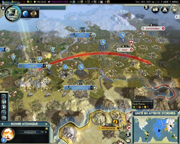 Comble de la félicité : la richesse du jeu ne signifie en rien qu'il se révèle trop complexe pour pouvoir être apprécié par des débutants. Il faut dire que l'interface a été revue et nettement corrigée. Désormais éclatée en différents modules, elle dissimule habilement les informations les plus détaillées afin de n'effrayer personne, tout en permettant de réaliser avec efficacité et simplicité l'ensemble des actions essentielles. Le bouton "Tour suivant" devient même contextuel et n'apparaît que lorsqu'il n'y a plus rien d'important à accomplir. Dans le cas contraire il affiche plutôt la mention "unité en attente d'ordres", "choisir une construction", "choisir une technologie", "message d'une cité-état" ou encore "adopter une doctrine" et renvoie naturellement vers l'action ou le panneau correspondant. Une bien bonne idée qui évite de laisser passer une action primordiale à cause d'un bête empressement. On pourrait également louer les progrès graphiques qui, sans être extraordinaires, sont tout de même appréciables. La 3D affichée est classique, mais de bonne facture. Et, surtout, le jeu tournera parfaitement sur un PC vieillissant. Même lors des tours les plus avancés, lorsque l'IA a des milliers de paramètres à calculer, on souffre rarement d'animations trop saccadées ou de temps d'attente interminables. En revanche, la réalisation purement technique est loin d'être parfaite. Nous avons eu à déplorer de fréquents plantages avec retour brutal sous Windows (heureusement qu'il y a une sauvegarde automatique tous les dix tours d'ailleurs...), un bug qui remettait subitement les voix en anglais sans que nous touchions aux options de langue, et des didacticiels qui ne fonctionnent carrément pas du tout (aucun conseiller pour nous dire quoi faire dans ces quelques missions spécifiques, alors que tout marchait bien sur la version preview testée il y a quelques semaines). On peut également regretter l'impossibilité de zapper la séquence d'introduction, qu'il faut donc subir à chaque lancement du jeu. Ou encore les problèmes de traduction qui aboutissent à l'affichage de messages tels que "le Oslo a été conquis". Les joueurs attachés à la notion de scénario ou d'objectifs précis se désoleront quant à eux de l'absence de campagne solo ou de quelques missions plus dirigistes. Et, sur le fond, on peut naturellement pointer du doigt la disparition totale du concept de religion. La perspective de voir tout fanatisme disparaître de la surface de la planète peut paraître intéressante dans l'absolu, mais elle n'a absolument rien de réaliste à l'heure où certains fondamentalismes religieux prennent de plus en plus de place...