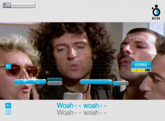 SingStar ABBA, l’arme absolue des soirées karaoké entre amis va devoir faire face à l’invasion d’un autre groupe mythique des années 70/80. Queen, menée d’une main de fer (enfin façon de parler) par un Freedie Mercury, aussi charismatique qu’énigmatique, a donc été choisi pour relancer la carrière de la franchise SingStar, toujours aussi populaire auprès d’un grand public en mal de chansons légendaires. Les micros peuvent chauffer, les costumes aussi, Sony Computer Entertainment nous propose avec ce disque, disponible aussi bien sur PlayStation 2 que PlayStation 3, pas moins de 25 morceaux (25 chansons originales + 5 medleys) du quatuor britannique. Another One Bites The Dust, Bohemian Rapshody, Breakthru, Crazy Little Think Called Love, Don’t Stop Me Now, I Want It All, I Want Ti Break Free, One Vision, Somebody To Love, Under Pressure, We Are The Champions, We Will Rock You, la liste est longue et le nombre de hits en puissance assez hallucinant. Evidemment, pour espérer chanter comme le bon vieux Freedie et performer comme lui, il va falloir se chauffer les cordes vocales de bon matin. Heureusement, il existe plusieurs degrés de difficulté qui permettront aux novices de ne pas trop passer pour des bleus. En revanche, vous ne serez pas surpris du fait que les développeurs ne sont toujours posés la question du renouvellement. L’habillage, les modes de jeu, la navigation ou bien encore les menus, rien n’a changé depuis les débuts de la licence lancée voilà maintenant cinq ans. Heureusement, on se console très facilement par la présence des clips d’origine, avec la qualité d’origine, qui prouve bien que la mode de l’époque était placée sous le signe du grand n’importe quoi. De la petite moustache de Mercury à la touffe africaine de Brian May en passant par les bottes de John Taylor, tout respire le kitsch à plein nez, et c’est un véritable coup de boule stylisée qu’on se prend en pleine poire. Manque de bol, on aime ça.