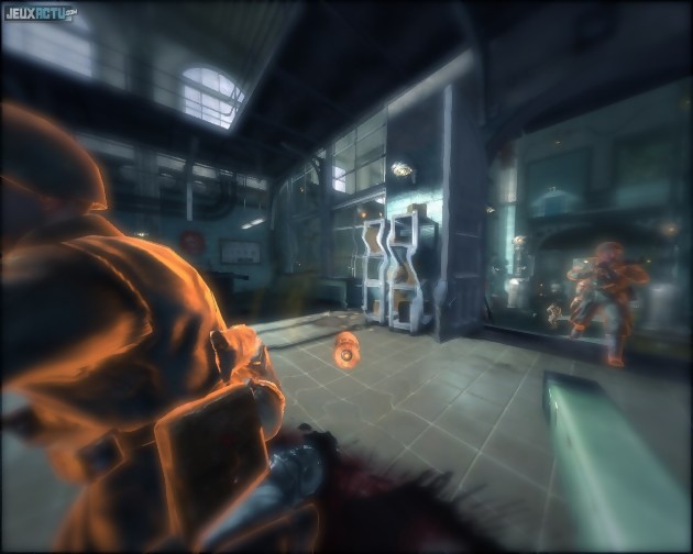 Ce genre d'interactions est hélas limité aux objets ayant été marqués à l'E99 (comprenez : aux objets choisis par avance par les développeurs), et ils ne sont pas bien nombreux. En revanche, on n'hésitera pas à faire usage du MT sur un maximum de soldats, qui vieillissent alors instantanément et se retrouvent transformés en squelettes bien inoffensifs. En ajoutant à cela un arsenal plutôt bien fourni et améliorable sur plusieurs niveaux (dégâts de chaque arme, capacités du chargeur, vitesse de rechargement), on obtient de multiples manières de se débarrasser des adversaires. De quoi s'amuser très honnêtement, mais hélas pendant peu de temps puisqu'il faut environ sept ou huit heures pour terminer la campagne solo. Un joueur pressé, qui ne prendrait pas la peine d'explorer les lieux et de s'intéresser aux messages audio et vidéo laissés à son attention, pourra même certainement se gâcher son plaisir en cinq petites heures. La version PC souffre par ailleurs d'un bug qu'on espère voir corrigé bientôt : parfois, le chargement de textures ne se fait pas assez rapidement et l'on peut observer des surfaces très peu détaillées. Un problème de l'Unreal Engine 3 déjà aperçu dans Bioshock ou Unreal Tournament III, mais qui ne durait alors qu'une ou deux secondes. Ici, il peut se passer plusieurs minutes pendant lesquelles on évolue dans des décors sérieusement dégradés. Pas de quoi se formaliser outre mesure tout de même, car ce n'est pas systématique et dans le feu de l'action on n'y fait pas toujours attention. Terminons par un mot sur le mode multijoueur, qui oppose une équipe de soldats à une équipe de créatures mutantes. Ces dernières évoluent en vue à la troisième personne, ce qui apporte un peu de renouveau au gameplay. Mais du succès commercial du jeu dépendra l'intérêt de ce mode multi. Sans personne à affronter, à quoi bon guerroyer ?