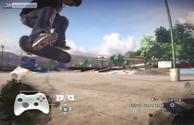 Encore une fois, le gameplay repose sur l’utilisation de ce stick et exclusivement sur l’utilisation de ce stick. A la différence de Fight Night Round 3, pour en revenir encore à lui, il vous est impossible de basculer la maniabilité sur les boutons. Dans Skate., les boutons X et A servent à prendre de la vitesse, tandis que le B permet de freiner ou de réaliser des Chris Air, des No-Foot Air ou des Coffin. Enfin le Y active les défis. Par conséquent, le stick analogique droit exécuter les flips grâce à la commande "flic kit". Selon les directions données, vous réaliserez différents sauts du simple Ollie au Nollie en passant par les Pop Shove-It, les Kickflip, Heelflip et 360 Flip. Plus le style de flip est compliqué, plus la manœuvre demandera de dextérité, en goofy comme en regular. Vous commencerez par apprendre la base du skate avec le Ollie qui consiste à appuyer en arrière avant de rabattre le stick en avant pour sauter. Viendront ensuite les diagonales, les rotations et les légères inclinaisons dans le cas des manuals. De multiples mouvements sont donc réalisables mais malheureusement dans le feu de l’action, on n’en laisse tomber la plupart. Trop strictes, elles demandent trop de précision ce qui n’est pas chose facile avec le stick. A cela, il ne faut pas non oublier que les grabs sont associés aux deux gâchettes pour encore plus de tricks. Flip + Grab, à la rigueur, c’est encore facile. On complique un peu plus la tâche avec les rotations. Cette fois-ci, il faut titiller le stick analogique gauche qui modifiera votre position en fonction de l’angle donné. Réaliser donc un Pop Shove-It Nose Grab 360°, tout de suite c’est beaucoup plus compliqué ! Mais Electronic Arts en rajoute une couche dès lors qu’il faut utiliser le bouton B pour saisir sa board et l’enlever de dessous ses pieds. Autant dire qu’il faut un troisième bras. Et c’est le gros défaut de ce Skate. Malgré le fait d’innover dans le genre, le gameplay reste beaucoup trop complexe pour le commun des mortels et gagner un maximum de points sans perdre sa jauge de multiplicateur devient mission impossible si vous voulez varier vos tricks. C’est dommage d’autant plus qu’il n’y a aucune alternative à ce gameplay. C’est à prendre ou à laisser. Enfin pour parler rapidement du mode multijoueur, on retrouve l’essentiel des épreuves solos mais c’est surtout le partage de vidéos ou de photos façon Halo 3 qui ravira les experts en la matière avec des séquences aussi bien loufoques qu’impressionnantes.