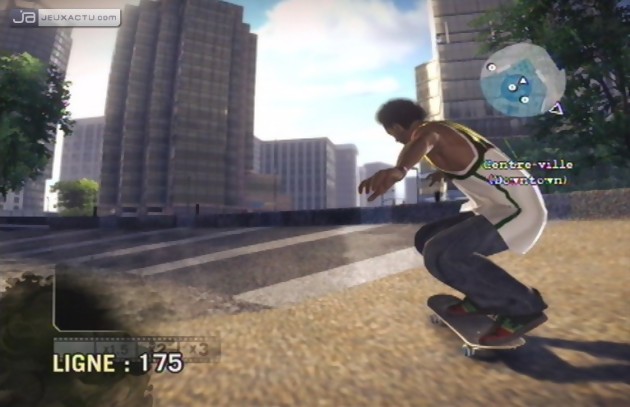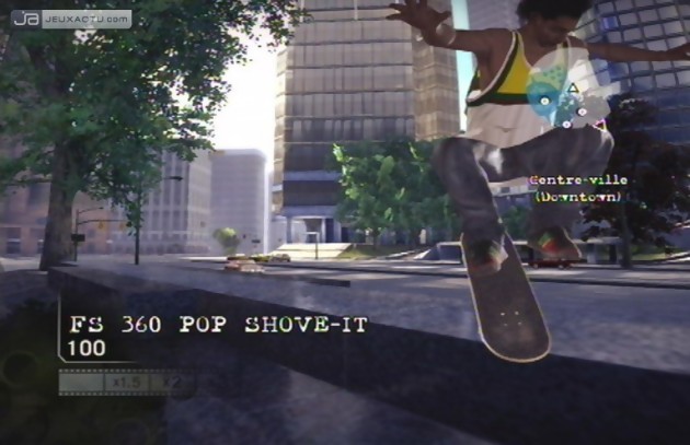 La ville est suffisamment vaste et éclectique pour proposer différents quartiers tous différents grâce à leur architecture. Vous commencerez à faire vos preuves dans la banlieue bon chic bon genre de San Vanelona avant d’atteindre la zone des HLM et de poursuivre votre carrière dans le centre-ville ou dans la vieille ville. Pour les moins feignants des skateurs, faire le tour de la cité prendra de longues minutes mais sachez qu’il est toujours possible de prendre le métro pour se rendre ailleurs ou passer directement par le menu carte afin de découvrir les nombreuses épreuves qui vous attendent. En plus des classiques "Best Trick Contest" où le but est de réaliser le meilleur enchaînement de figures dans le temps imparti, vous pourrez vous mesurer à d’autres skateurs en quête de gloire en mode Jam, réaliser vos propres films grâce à votre caméraman attitré, poser pour un célèbre magazine de skate, coller aux basques d’un skateur en mode "Suis-moi", exécuter une séquence de tricks sur un Spot ou jouer à une alternative du Pendu avec l’option S.K.A.T.E.. Ici, le but est de répéter les tricks d’un joueur ou au contraire d’en créer des bien compliqués pour malmener son concurrent, sans jamais reproduire la même figure. L’imagination prédomine donc surtout que cette épreuve se focalise essentiellement sur les flips et les rotations. Les grabs sont proscrits. A l’inverse, lorsque vous discuterez avec un skateur pro ce dernier vous demandera un enchaînement bien particulier sur tel ou tel module. Et il faudra respecter à la lettre ses consignes pour être sûr de signer un contrat de sponsoring ou de décrocher la Une d’un magazine. Les épreuves sont suffisamment variées pour vous faire évoluer comme bon vous semble au sein de "The Skateboard Mag". Parallèlement à ce canard, vous pouvez travailler pour "Trasher Magazine". Ici les épreuves sont sensiblement les mêmes si ce n’est le challenge Deathrace qui mise à fond sur la course de vitesse. Et que faire pendant que vous rejoignez une nouvelle étape ? San Vanelona regorge de piscines, d’écoles, de parcs, de places, d’établissements privés pour découvrir de nouveaux spots ou des défis pro en compagnie de quelques légendes telles que Danny Way, Pat Duffy, Mike Carroll, Mark Gonzales, Paul Rodriguez, PJ Ladd ou Chris Cole. C’est en gagnant leur confiance que vous approcherez de nouveaux sponsors mais pour y arriver il faudra réussir leur challenge de tricks avec ou sans limite de temps. Parallèlement à ces découvertes qui feront grimper votre côte de popularité, vous rencontrerez sur votre chemin de nouvelles boutiques pour faire le plein de vêtements. Mais très franchement, San Vanelona malgré sa grandeur manque singulièrement de vie. Quelques bagnoles ici ou là pour vous défoncer la caboche si vous traversez en dehors des clous, quelques vigiles pour vous faire passer l’envie de skater dans des endroits interdits tout en vous fauchant quelques dollars, des piétons bien agaçants qui se sentent obligés de marcher juste devant vous et de rares skateurs qui vous envoient au tapis si vous grindez leur spot, ça reste insuffisant. Pire encore, lorsqu’il y a un peu trop de monde dans le décor, c’est la gamelle assurée.