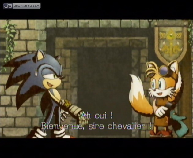 Sonic et le Chevalier Noir revisite le mythe du Roi Arthur et des Chevaliers de la Table Ronde, sans nécessairement verser dans le rose-bonbon comme sait si bien le faire Nintendo avec son plombier moustachu. On prend les choses avec un minimum de sérieux donc, ce qui est toujours bon signe lorsque l'on est sur le point de commencer une quête malheureusement courte ici. Le Roi Arthur, ensorcelé par le pouvoir maléfique de la légendaire épée Excalibur qui l'a transformé en Chevalier Noir, sème la terreur dans le royaume de Camelot. C'est la raison pour laquelle la divine Merlina va solliciter l'aide de Sonic en le téléportant directement dans son univers médiéval. Pour mettre fin au règne de l'ombre démoniaque du Roi Arthur, notre héros va devoir suivre les conseils avisés de la magicienne qui le mènera tout droit à Caliburn, l’arme sacrée dont l'utilisation nécessite une âme pure et un profil chevaleresque. Naturellement, le casting de Sonic et le Chevalier Noir regroupe les personnages les plus connus de la saga Sonic, et c'est plutôt amusant de voir que les développeurs de la Sonic Team ont tenu à respecter les codes qui régissent les légendes arthuriennes. Ainsi, Amy endossera le costume de la Dame du Lac, tandis que Shadow, Knuckles et Blaze incarneront respectivement Lancelot, Gawain et Percival. Tails, quant à lui, occupera un rôle plus anonyme - celui d'un forgeron quelconque -, mais non moins important puisque c’est chez lui qu’il faudra se rendre pour parfaire son équipement. Contrairement à ce que l'on craignait jusqu'à présent, Sonic et le Chevalier Noir a de la gueule et offre l'opportunité de visiter des lieux qui sortent du canevas visuel auquel s'était restreinte la Sonic Team ces dernières années. Coloré, faisant appel à quelques effets de lumière saisissants, le jeu affiche des paysages médiévaux qui illuminent l'écran ; dans les limites techniques imposées par la Wii évidemment. On se surprend même à remarquer de nombreuses textures séduisantes qui prouvent que le jeu n'a pas été peint en une après-midi. Toutefois, Sonic et le Chevalier Noir n'offre pas un champ d'action infini, ce qui réduit du coup les risques de tomber sur un polygone tracé à la main ou sur un château auquel il manquerait deux briques, et rappelle aussi le caractère dirigiste du jeu. Quant à l'animation, elle ne connaît quasiment aucune baisse de régime malgré les nombreux éléments qui s’entassent sous les yeux parfois.